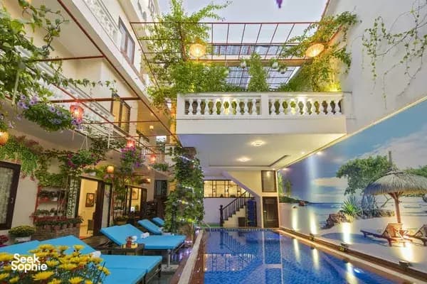 Experience the charming combination of Hoi An and Western influences in your Pham Gia Boutique Villa homestay, against the picturesque backdrop of Hoi An, known for its reputation as a UNESCO World Heritage site, diverse food options, and beautiful beaches. Explore top-class recreational facilities - relax and take in your surroundings in the garden, or spend a leisurely afternoon in the pool surrounded by floral greenery. For those looking to add a little more excitement to their trip, discover numerous architectural sites in close proximity, learn about the local lifestyle, or witness the beautiful natural landscapes on trips offered by the host at an additional cost. The best part is Hoi An's Ancient Old Town is only 10 minutes away - it's close enough to walk, and far enough to still enjoy the peace and quiet when you're resting at night. Alternatively, for 30.000 VND, you can rent a bike for the day and cycle around the lovely town.