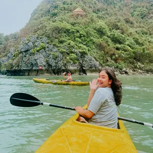 This Cat Ba boat trip takes you to see a lesser-known side of Lan Ha Bay.You’ll kayak through hidden lagoons, tunnels, and islands, visit Cai Beo Fishing Village to learn about the local fishing culture, and take a refreshing dip at the lesser-known Ba Trai Dao Beach, known for its crystal clear waters. Along the way, you’ll discover other hidden gems like Temple Beach and Screaming Island. In between exploring, you’ll also enjoy a yummy Vietnamese lunch onboard as you cruise through the bay.What to ExpectEmbark on a scenic boat cruise through Lan Ha Bay, taking in the beauty of Cai Beo Fishing Village and unique karst formations.Kayak through hidden lagoons, tunnels, and archways, exploring the wonders of K.A cave and Bats cave.Savor a delicious traditional Vietnamese lunch at Ong Cam Islet.Enjoy free time for swimming, sunbathing, boat-jumping, or simply relaxing on deck.Cruise through Southern Ha Long Bay, passing by breathtaking sights like Dau Be Island, Vung Vieng Fishing Village, Le Virgin Arch, and The Kita Arch.Swim and explore the pristine Ba Trai Dao Beach and uncover hidden gems like Temple Beach - Screaming Island.Witness a mesmerizing sunset over the bay as you head back to the harbor.