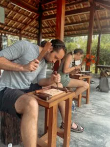 Unleash your inner artist with this hands-on wood carving experience in Hoi An! Unlike generic craft workshops, this takes you deep into one of the oldest traditional crafts in Vietnam, guided by passionate local artisans. You’ll work with a team of experienced carvers in a peaceful garden setting—far from the usual crowded tourist routes. This is perfect for travellers who want to immerse in local culture rather than just picking up a souvenir. You'll not only learn the techniques of wood carving but also get to create your own unique piece to take home. Whether you’ve never picked up a chisel before or you’re a seasoned artist, the expert guidance will help you craft something special. The highlight? This workshop takes place in one of the largest local sculpture workshops in Hoi An. You'll get a behind-the-scenes look at both the exhibition area and the production workshop, giving you a real appreciation for this beautiful craft.What to ExpectConvenient hotel pickup and drop-off from central Hoi AnTour a large local wood carving workshop, including both exhibition and production areasPersonalised instruction from expert artisans as they guide you step by step2.5 hours of hands-on carving time to create your own masterpieceA certificate from the artist to commemorate your new skillsGood to KnowRemember to bring some extra cash for any personal expenses or to tip your instructorThis experience is designed for beginners, so no prior carving skills are neededThe setting is peaceful and inspiring, making it a great alternative to busy tourist activities