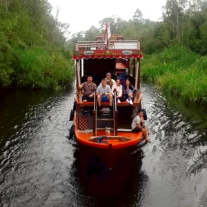 This 3D2N trip is special because it doesn’t just show you orangutans - it helps protect them. Part of your trip directly supports a local nonprofit working to buy back rainforest, rehabilitate orangutans and support nearby communities. Perfect for conscious travellers and nature lovers who care about the rainforest and want their trip to do good.You'll cruise down Sekonyer River - visiting three orangutan feeding stations and learning about their stories, behaviour, conservation efforts and the challenges of protecting them. You’ll head out on a short night trek to spot nocturnal creatures. You'll also get to plant a tree as part of the local community's reforestation efforts - planting fruit trees that will feed orangutans in the years to come.By joining this experience, you're directly supporting the conservation efforts of Yayasan Orangutan Hijau Kalimantan (YOHK). A portion of the profits goes toward protecting orangutans and their rainforest habitat - including efforts such as buying back forest land, supporting rehabilitation programs, and funding education and community empowerment initiatives around Tanjung Puting.What to Expect3-day, 2-night private cruise through Tanjung Puting on a traditional klotok boatSupport local orangutan habitant conservations efforts with part of your fees going to a local nonprofitVisit orangutan feeding stations at Tanjung Harapan, Pondok Tanggui and Camp LeakeySlow cruising past riverbanks frequented by proboscis monkeys, macaques and hornbillsMorning and daytime bird watching – spot hornbills, kingfishers, egrets and moreShort guided night trek to find nocturnal animals in the jungleTree planting – help support reforestation and leave a positive impactDelicious Indonesian meals cooked by your private onboard chef (many dietary needs can be accommodated)Opportunity for stargazing from the upper deck each eveningSleep in a fan-cooled, open-air setup under a mosquito netKnowledgeable, kind and passionate crew who really care about the forestGood to KnowNight trek terrain is flat and manageable – wear comfy, closed shoesAccommodation onboard is simple but comfortable with hot showers and clean beddingBring binoculars or a good zoom camera for spotting birds and wildlifeAlcoholic drinks are not provided – you're welcome to bring your ownTimings may shift depending on river conditions and wildlife activityAmenities/facilitiesPrivate wooden klotok boat (approx. 13m x 3m)Cold water fresh shower and fan-cooled sleeping areas with mosquito netsViewing deck for wildlife spotting and stargazingBasic, clean bedding and linens provided on board