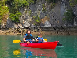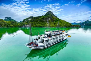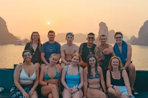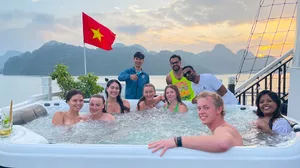 If you're looking for the most sociable experience in Halong Bay, get ready to amp up your Halong Bay experience with non-stop fun! This isn't your average cruise – think kayaking through hidden lagoons like the Frog Pond, bouncing on a giant water trampoline, unwinding in outdoor Jacuzzis, and challenging your new friends to epic board game battles. As the sun dips below the horizon, the party heats up with a Buy 2, Get 1 Free happy hour deal that's sure to get the good times rolling.This is the ultimate social playground on water, where stunning scenery meets unforgettable moments.What to ExpectPick-up and drop-off in Hanoi's Old Quarter, making your travels seamless.Comfortable cabin accommodations with air conditioning (shared with 2-3 guests).All meals onboard, including two lunches, one dinner, and one breakfast - fuel up for your adventures!Complimentary morning tea and coffee – the perfect way to start your day.Complimentary mineral water to stay hydrated throughout your trip.A refreshing welcome drink upon arrival.All entrance and sightseeing fees are taken care of.Access to outdoor Jacuzzis for ultimate relaxation.Kayaking adventures through the picturesque bay.An English-speaking guide to enhance your experience.Sunset party with a Buy 2, Get 1 Free drink special during happy hour.Nightlife activities including dancing and games.A chance to witness the magnificent Halong Bay dawn.Good to Know Beverages and personal expenses are not included, so remember to budget accordingly.There's an additional charge for any drinks you bring onboard, so take advantage of the onboard bar and happy hour deals.Be aware of the surcharge of $20/night during Christmas (Dec 24th), New Year's Eve (Dec 31st), and Vietnamese Tet Holidays.Boat Facilities & AmenitiesOutdoor JacuzzisVolleyballKayaks