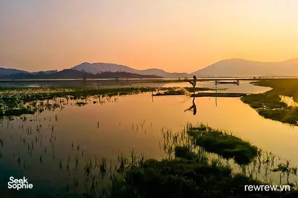 Visit Lak Lake, Vietnam’s largest highland lake, and enjoy sunset views if the weather allows