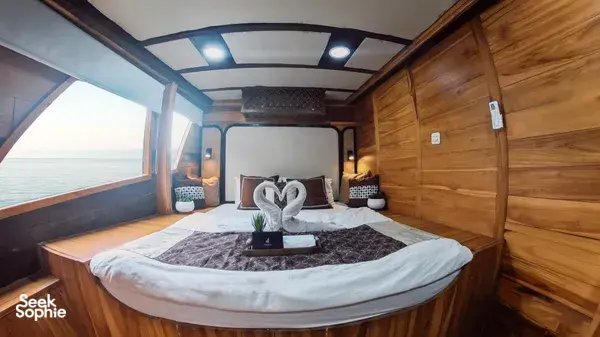 This is one of Komodo's most elegant private Phinisi boats, with modern design, lots of lounging area for your group and a seriously great crew. It sleeps only 12 guests, which means that you'll get a more personal experience on this boat compared with the other Phinisis. As it's a private charter, the itinerary is flexible and customisable to suit your group’s pace and interests. Other than the really nice boat (which also has a jacuzzi!), the crew here is a highlight. They'll take gorgeous photos of your trip for you so you can focus on making memories, and they are really caring and helpful. Guests have raved about the wonderful crew on board, and the yummy food! There's also Karaoke and BBQ night onboard which is really fun to look forward to!What to expect:Day 1: Depart from Labuan Bajo and head to Kelor Island for a trek. Continue to Rinca Island to see the famous Komodo Dragons. Conclude the day with a stunning sunset at Kalong Island, observing thousands of bats taking flight.Day 2: Witness a breathtaking sunrise at Padar Island, followed by snorkeling and relaxation at Long Beach/Pink Beach. Head to Taka Makasar and Manta Point for more snorkeling and a chance to see Manta Rays. Overnight near Siaba/Sebayur Island.Day 3: Discover the vibrant marine life while snorkeling at Siaba/Sebayur, then spend leisure time at Kanawa Island before returning to Labuan Bajo.This private charter includes all meals, snorkelling equipment, a local guide, life jackets, coffee, tea, and water. Enjoy an unforgettable and tailor-made journey with your loved ones.Boat Specifications:A traditional Phinisi built with premium Iron Wood & Teak WoodCabins: 2 Master Ocean View cabins and 4 Private cabins, each with ensuite bathrooms, air conditioning, and hot waterCrew: 6 professional and attentive staff membersSafety: Life jackets, life buoys, and fire extinguishersCruising Speed: 8-11 knotsComplimentary Entertainment:Paddle BoardKaraokeBBQ NightBluetooth SpeakerChild & Infant Pricing:Infants (0-24 months): Free of charge.Children (2-5 years old): Please contact us for more details on available discounts. Discounts apply only if the child is the 3rd or 4th guest in the booking or if an extra bed is required.Children (6 years and above): Same pricing as adults.Note:Bookings are made in pairs and we do not allow two strangers to share a room.Alcohol is not provided onboard. Feel free to bring your own if you’d like to enjoy a drink during the trip!