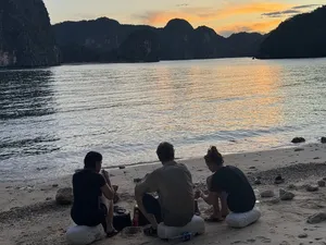 Step aboard for an intimate and exclusive journey through the untouched beauty of Lan Ha Bay, a hidden gem that most tourists never get to see! Unlike typical crowded tours, this adventure is designed for a select few—just 10 guests, compared to the usual 30-50—ensuring you enjoy a personalized, serene experience. Led by Tien Anh, a local expert with unmatched knowledge of the bay, you’ll follow a completely different itinerary, avoiding the tourist traps and heading to secret spots that larger boats simply can’t reach. Plus, with a later start time, you’ll skip the crowds and enjoy the bay in peaceful solitude.You'll wind your way through towering limestone cliffs, explore mysterious caves, uncover serene lagoons, and relax on secluded, tourist-free beaches. What sets this tour apart even more? On high tide days, you'll dive into the life of a fisherman, collecting mussels or going fishing in a traditional fishing village. On low tide days, you'll hunt for thunder crabs in hidden caves—a rare, hands-on experience that no other boat tour offers.And that's not all—your adventure continues with a stop at a stunning, deserted beach where you can take a refreshing swim and soak in a romantic, uninterrupted sunset. As night falls, gather around a beach campfire for an exclusive seafood barbecue dinner, enjoying fresh local flavors under the stars. Top off the night with a magical stroll along the beach, where bioluminescent plankton will light up the water, creating a once-in-a-lifetime, unforgettable experience that only this tour offers.What to ExpectExplore the charming Cai Beo fishing village and witness the traditional way of lifeKayak through stunning karst caves, like Co Do Cave or Hau Cave, leading to hidden saltwater lakesOn high tide days, try your hand at collecting mussels or fishing as a local fishermanOn low tide days, embark on a unique adventure: catching thunder crabs in hidden cavesSavor a delicious seafood barbecue dinner on a secluded beach, complete with a bonfire under the starsWitness the magical glow of bioluminescent plankton illuminating the water at nightTipsRemember, the itinerary is flexible and adjusted based on daily tide levels to ensure the best possible experience!