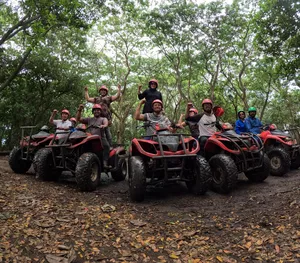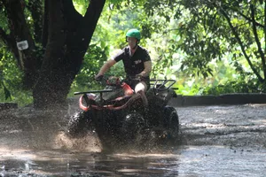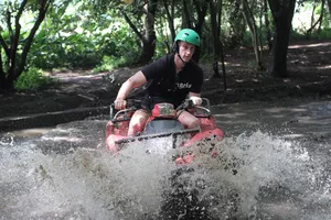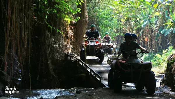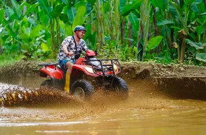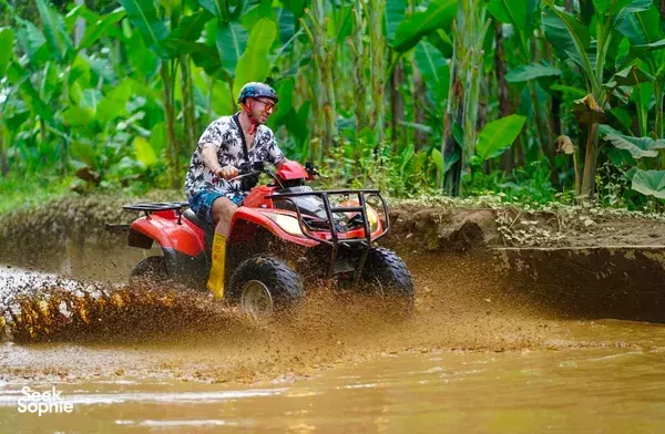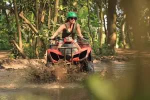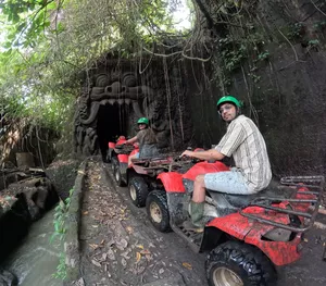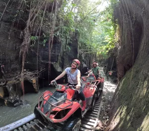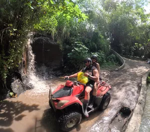 Ready to kick up some mud and discover a wilder side of Bali? This action-packed ATV adventure near Ubud takes you way off the tourist trail—through lush rice fields, muddy jungle paths, rivers, a cave and even to a hidden waterfall. It's a proper ride through Bali's untouched countryside that you won’t get from the usual tours. Unlike other ATV rides that stick to flat dirt roads, this one gives you a full mix of terrain—from steep up-and-down hills to narrow water trails and even a 1000m² fun zone where you can drift and free-ride to your heart’s content. It’s perfect for adrenaline junkies, families with teens, or even first-timers looking for a thrill that’s both safe and fun. If you're the kind of traveller who would rather explore Bali’s backroads than wait in line at a temple, this one's for you. With top-notch equipment, friendly guides, and stunning natural backdrops, this is a proper off-road adventure with bits of Bali most people never get to see.What to ExpectStart with peaceful views as you ride through lush green rice fieldsTackle up-and-down trails for a real off-road challengeTest your skills in a huge 1000m² free riding and drifting zoneSplash through rivers and muddy water trailsRide through the jungle to a secret waterfallGo underground as you pass through a natural caveCool down with a shower and enjoy a much-deserved lunch at the endGood to KnowHotel transfer/transportation is not included but available as add onNo experience needed – the guides tailor the experience to your skill levelThe terrain is muddy and rugged, so bring a change of clothesLunch is included after the ride; hotel pickup is available as an add-onThis is a join-in trip – great for solo travellers, couples or groupsGood for kids aged 12 and above; younger children may not be suited for this rideClosed shoes are strongly recommended for safety