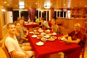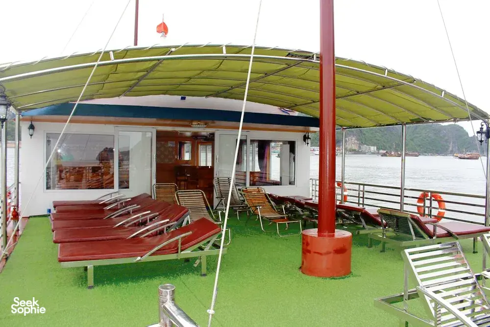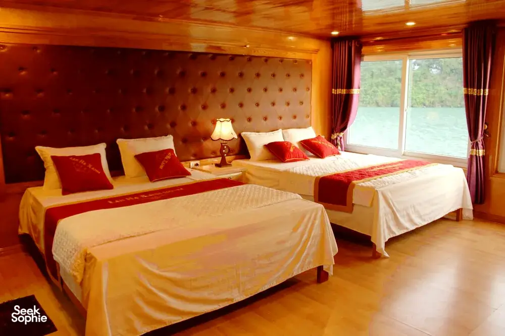 This 2D1N cruise is a great pick if you want a less-crowded way to explore Lan Ha Bay while still getting the most time on the water.The itinerary is longer than typical 2D1N cruises and planned to avoid peak crowd timings, giving you plenty of moments to swim or snorkel at secluded beaches and have 1.5–2 hours of kayaking through rock arches to reach hidden lagoons and tunnels.What makes it feel extra personal is the team: fluent English-speaking guides who love sharing about Cat Ba's local history and culture. And we hear that one of the guides, Toni, can surprise you with some cool magic tricks too! You can also choose to join the guides for a beach clean-up along the way - a small but meaningful act to help keep the bay beautiful.What to ExpectCruise around Lan Ha Bay and Ha Long Bay, with less crowded scenic spots to enjoy peaceful landscapesVisit floating fishing villages and learn about local fishing lifeSwim or snorkel (for fun) at deserted beaches with provided equipmentKayak through rock arches, tunnels, and discover the landscapes.Stay overnight anchored in quiet lagoons, soaking in stunning sunsetsEnjoy delicious local food, including two hearty lunches, a dinner, and breakfast, with plenty of fresh fruitIf you like, try night squid fishing - a real local experienceGood to KnowThis cruise is more rustic-adventure than luxury - that’s part of the charm. It’s a steel boat built in 2018, comfy and functional, but not a high-end “hotel on water.”One rare perk: it’s super flexible. You can cancel or reschedule up to 24 hours before departure without penalty.You’ll have private cabins with hot showers and air-conditioning. Just a heads-up: at night, the generator/engine that powers the A/C can be noisy. In cooler weather, the boat can turn it off for a quieter sleep - but this only happens if everyone onboard agrees, since it affects all cabins.If you’re a light sleeper, leave a note at booking and the team will try to place you further from the engine room (subject to availability).Activities are generally suitable for most fitness levels, though kayaking and swimming do involve light physical effort.If you’re eco-minded, you’re welcome to join the crew for a beach clean-up along the way.Weather and tides can affect the plan, but the guides will do their best to adjust smoothly and tailor the flow to the group where possible.Important update (from May 1, 2026): Due to new regulations, overnight boats must return earlier. This cruise will end at 12:00 (noon) instead of 15:00, while the program/route remains the same (with a shorter, earlier lunch on the last day).Amenities/facilities8 private cabins (4 double, 2 triple, 2 family), each with a private bathroom, hot shower, fan, and air-conditioning.Shared spaces include a dining room, a bar area with fans, and an open relaxing deck for views and sunset moments.Kayaks included for exploring lagoons and quiet corners up close, plus snorkelling gear available for those who want to swim with a mask and fins.Freshly cooked local meals prepared onboard.
