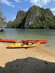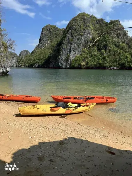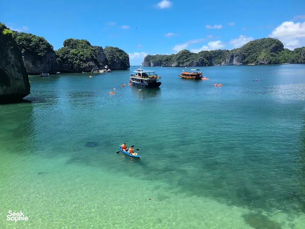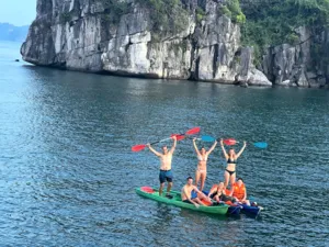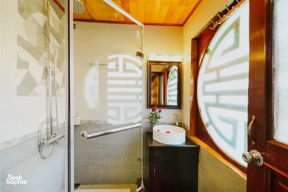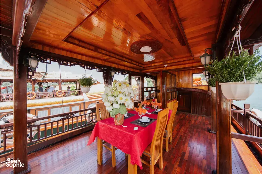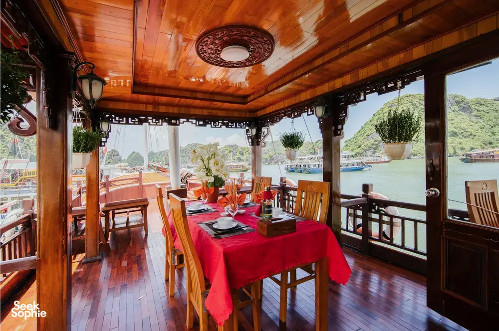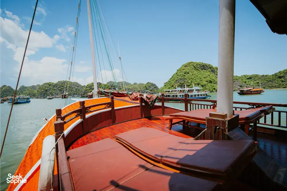 Anh started her cruise line back in 2018 with a simple idea—smaller boats, better experiences. Instead of going big, she chose to build a handful of cosy wooden boats, each one thoughtfully designed to suit small groups, couples, or families. She picked Lan Ha Bay as her sailing route—a quieter, less touristy spot near Halong Bay—so her guests could enjoy the same stunning views without the crowds. From peaceful kayaking trips to relaxed evenings fishing off the side of the boat, Anh’s way of hosting is all about slowing down and making people feel at home on the water.