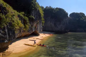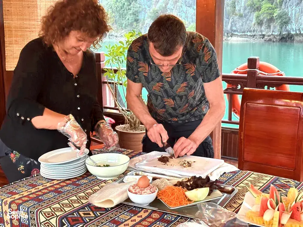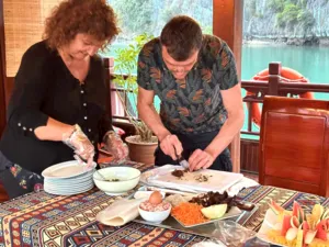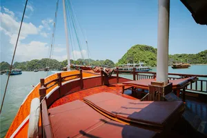 If you're looking for a slow and meaningful way to experience Lan Ha Bay with your favourite people, this 3D2N private boat charter is just the thing. With the entire boat to yourselves, you’ll get space to reconnect and take in the views without rushing from place to place.Unlike typical Halong Bay day trips packed with crowds and tight schedules, this experience is all about having the freedom to explore at your own pace. You’ll paddle through quiet lagoons, visit ancient caves, swim in crystal waters, and cycle through Viet Hai village before all the day boats arrive. And because it's a private charter, every moment is tailored just for you and your group - perfect for couples, families, or close friends looking for something more immersive.You’ll stay on a beautifully crafted wooden junk that blends traditional charm with modern comfort. With comfy cabins, delicious home-cooked meals, and a warm, friendly crew, this is perfect if you value slower, deeper travel experiences.What to ExpectChartered wooden junk with en-suite cabins – all yours, no other guestsExplore fishing and floating villages with over 400 housesCycle through Viet Hai village and hike in Cat Ba National ParkVisit Tiền Đức Cave – an ancient archaeological siteJoin Vietnamese cooking demos and try your hand at spring rollsHomemade lunch with locals in a traditional houseSwim, kayak or unwind on wild, untouched beachesSee glowing plankton on a night kayak or go squid fishingGood to KnowThis is a private charter for your group only – no outside guestsPick-up and drop-off from Cat Ba town includedAll meals included – with seafood, vegetarian and custom optionsRound-trip transfer from Hanoi not included (can be arranged separately)Great for couples, families or close friends wanting quality time in natureItinerary may shift slightly depending on the weatherAmenities/facilitiesSpacious en-suite cabins with air-conditioning and hot waterSun deck for sunset views and night stargazingBikes and electric car rides for village exploringKayaks and squid fishing gear includedOn-board dining area and bar serving fresh Vietnamese dishes