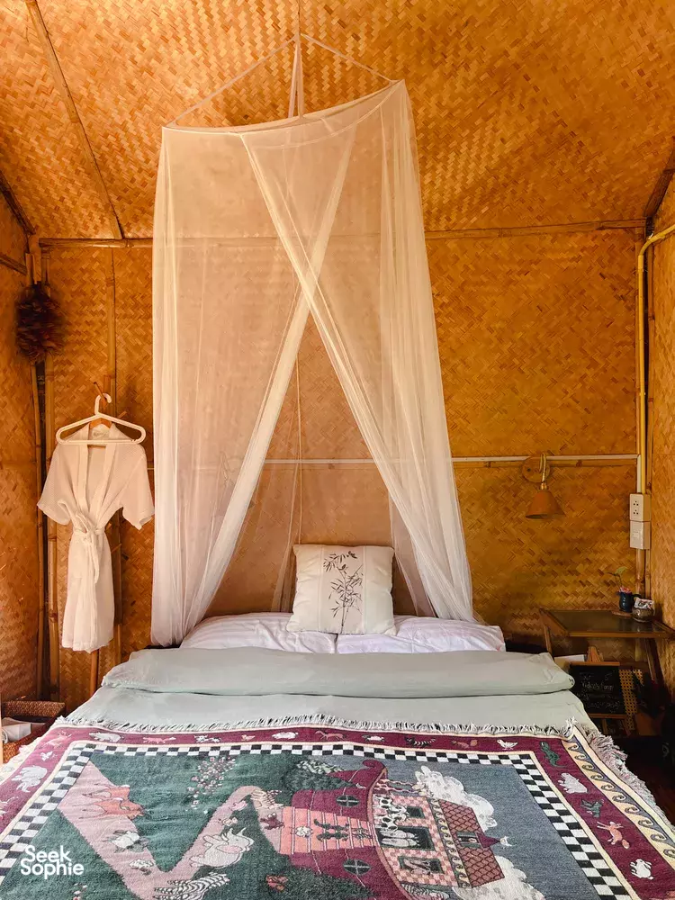 Escape the city and retreat into Chiang Dao’s quiet mountain valleys. This 3D2N slow living farmstay is for anyone who's looking to slow down and reconnect with nature.You'll wake up to mountain views, stretch and do morning yoga by a lotus pond, join a guided food foraging experience with the company of the friendliest rescue dogs and cats! The meals here are one of the best - homemade from the freshest ingredients from the organic farm. And if you feel like it, you can even join the chefs in the kitchen to cook! You'll also get to do some creative and artsy experiences like making your own eco-print fabric using natural pigments from stones, flowers, plants and indigo dye. Our favourite way to end the night is to do a lovely evening soak in the hidden hot springs around the farm. Come as you are, leave lighter, and a little more in love with life 💛About the sanctuaryThis heartfelt bamboo eco-sanctuary is lovingly built by Yidan. She was originally from China, came to Thailand for work, and somehow found herself in Chiang Dao, after a big life shift left her feeling burnt out. She wanted to reconnect with herself, and found that the quietness and slow life of Chiang Dao was what she needed to heal. So with her savings and her dog Lucky, she built this bamboo home (by hand!) and started a small organic garden. Now, she works closely with the locals to nurture this thoughtful space - a sanctuary for anyone who needs a little rest.Why Chiang Dao?Just 90 minutes north of Chiang Mai, Chiang Dao is a mountain haven known for its quiet valleys, hot springs, and breathtaking views of Doi Luang. Life here moves gently with animals wandering around - it's the perfect place to slow down and reconnect with yourself.What to ExpectStart your day slow with morning yoga by the lotus pond and beautiful mountain viewsFarm-to-Table meals: Enjoy yummy homemade breakfasts, lunches, and dinners made using fresh ingredients handpicked from the farm.Get creative with natural plant and flower dyes, and try your hand at indigo dyeing.Explore the farm alongside the farm animals - ducks, cats, and dogs - as Yidan shares stories of her sanctuary she built from scratchEnd your day with a relaxing soak in natural hot springsGood to KnowIncludes farmstay for 2 nights, return transfers from Chiang Dao Bus Station, 5 meals & 3 workshopsYou'll need to arrange your own transport to Chiang Dao Bus Station if coming from Chiang MaiWorkshops are designed for all levels - no experience neededThe retreat runs rain or shine, with indoor spaces available for wet weather daysThis is a private experience just for you and your group, though there may be other guests staying in separate rooms on the farmFacilitiesCommunal gathering spacesEco-friendly amenitiesHigh-speed WiFi (but you may not want to use it!)Cancellation policyCancel more than 10 days before your retreat: You'll receive a full refund.Cancel 7–5 days before: A 30% cancellation fee will be charged.Cancel less than 5 days before: A 50% cancellation fee will be charged.