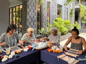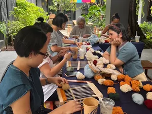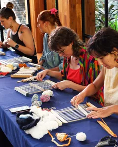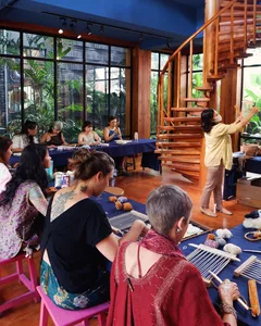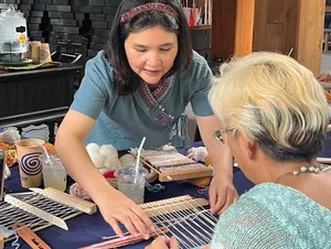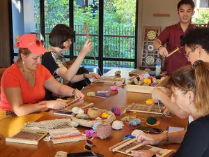 Weaving in Northern Thailand is more than a craft—it's a tradition. For centuries, local communities have used weaving to express cultural identity, create practical textiles, and pass down artistry through generations. Engaging in it connects you directly to the region’s rich artistic heritage.At this workshop, you’ll be guided by Rada, a passionate weaver and loom designer who has years of experience preserving and teaching this timeless art. With her warmth, patience, and deep expertise, she makes weaving approachable for everyone—whether it’s your very first time or you’re looking to deepen your craft.If you’ve ever been curious about weaving or love getting hands-on with traditional crafts, this is your chance to dive in and happily tangle yourself in colorful threads. Set in a beautiful, light-filled space tucked away in Chiang Mai’s Old City, this private mini loom weaving workshop is the perfect way to slow down, get creative, and make something meaningful with your own two hands.Over two calming hours, you’ll learn to work with a simple frame loom using naturally dyed yarns, guided step by step by Rada. It’s beginner-friendly, playful, and full of happy accidents—where every weave tells its own story!What makes it extra special? The space itself is full of soul: surrounded by art exhibitions, leafy courtyards, and a quiet little museum, every corner is thoughtfully designed and built with love. With a max of 12 people per session, it’s intimate and relaxed—just the way crafting should be.Perfect for friends, couples, or families with kids (yep, Rada is amazing with little ones too!), this isn’t just a workshop—it’s a moment of calm, a creative adventure, and a beautiful way to connect with Thai culture. 🧵💛What to ExpectEnjoy 2 hours of weaving in a cozy group where you’ll receive plenty of personal guidance while sharing the fun with others.Learn from warm, patient teachers who love helping you explore your creativity and celebrate happy accidents.Work with naturally dyed yarns that are gentle on the planet and beautiful to the touch.Take the mini loom home so your crafting journey can continue long after the workshop ends!Good to KnowMinimum of 2 people required to book.All materials are included, including your own frame loom to take home.Drinking water provided, but no food — best to grab a bite beforehand.Workshop takes place in Chiang Mai Old City — transport not included.Intermediate difficulty but very beginner-friendly with lots of guidance.