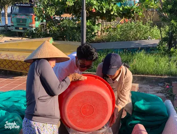 Just outside the bustle of Danang city, Nam Ô offers a rare window into a living fishing village that’s over 700 years old. Rather than being a heritage 'display', this is a real chance to walk among locals keeping age-old traditions alive—and to get hands-on with one of Vietnam’s most iconic (and often misunderstood) exports: fish sauce. If you're curious about cultural roots, sustainable travel, and love getting off the beaten path, this is for you.Unlike touristy cultural centres or factories, here you’ll get your hands fishy (literally!) in a fish sauce making session with the villagers who still do it the old way, in a craft so unique it’s been recognised as National Intangible Cultural Heritage. You’ll learn how nature, beliefs, and food are all weaved together in local life—from the sacred forest to the whale-worshipping temple.The highlight? You’ll get to meet two of Nam Ô’s deeply respected cultural keepers – Mr. Phú, a fourth-generation fish sauce artisan who founded the grassroots heritage project, and Mr. Vinh, the village chief and head of the Traditional Fish Sauce Guild. Their stories are rarely heard by outsiders, but with the help of a bilingual facilitator, you’ll be able to ask questions, learn from their experiences, and understand how they are preserving tradition while navigating modern challenges like climate change and urban development.Best for conscious travellers, storytellers, and anyone who prefers deep cultural connection over quick sightseeing. This is a slower, richer travel experience that stays with you—especially after the ending circle by the sea, where you’ll reflect on what this journey sparked in you.What to ExpectExplore a working fishing village that’s over 700 years old, far from the usual tourist trailWalk through the sacred Nam Ô Forest and learn local beliefs connected to natureVisit Nam Ô’s communal house where villagers gather and worship the sea guardianMake traditional fish sauce at a heritage workshop and learn the full processHear from villagers about protecting culture in the face of modern changeEnd the experience with a peaceful reflection circle by Moss Beach—through drawing, writing or sharing storiesGood to KnowGetting there: Nam Ô village is about 15km from Đà Nẵng city centre (around a 20–30 minute ride, depending on traffic). You can easily get there and back by Grab or taxi. Transport is at your own expense and not included in the experience.Meeting the culture keepers: Meeting Mr. Phú (4th-generation fish sauce maker) and Mr. Vinh (head of the Nam Ô Fish Sauce Guild) is subject to their availability. Please book at least 2–3 days in advance so the coordinator can help arrange their schedules.Language & facilitation: Local hosts mainly speak Vietnamese. An English-speaking coordinator will accompany you, translate, and guide the reflection activities.Walking & terrain: The experience includes light walking in the village, forest paths, and along the coast. Basic fitness is sufficient, but comfortable walking shoes are recommended.Temple etiquette: You’ll visit communal and sacred spaces (village temple, forest, well), so please dress modestly (shoulders and knees covered) and follow the coordinator’s guidance on local customs.Weather & conditions: This is an outdoor program. Bring sun protection (hat, sunscreen) and a light raincoat in case of sudden showers. Activities may be adjusted slightly depending on weather and real-life conditions.Supporting local livelihoods: Part of your fee goes directly to local households and initiatives in Nam Ô, helping them continue their traditional way of life.