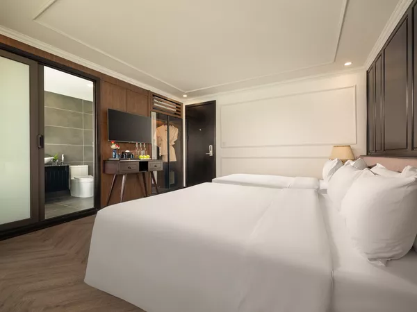 Set sail on this brand-new, 5-star Lan Ha Bay Cruise, launched in January 2025! Each cabin comes with a private balcony and an ocean-view bathtub, so you can wake up to breathtaking views without even leaving your room. Plus, the cruise has an elevator - something rare on Halong Bay cruises.If you're celebrating a special occasion, the crew goes the extra mile to make it memorable. VIP Honeymoon Suites come with a bonus setup of wine, fresh flowers, fruits, and elegant room decorations. Guests celebrating a birthday on their check-in/check-out dates will even receive a complimentary cake. Beyond luxury, there’s a perfect mix of adventure and relaxation. Kayak in the breathtaking Tra Bau area, known for its appearance in the movie Kong: Skull Island, explore hidden caves, or simply unwind in the jacuzzi with a view. If you’re looking for a truly special way to experience Lan Ha Bay, this is it.What to ExpectBrand-new luxury cruise launched in 2025, designed for a 5-star experience.Every cabin has a private balcony and an ocean-view bathtub for stunning bay views.Rare on Halong Bay cruises - an elevator on board for added comfort and accessibility.Explore the mysterious Dark and Bright Cave via a local rowing boat.Kayak and swim in the cinematic Tra Bau area, a filming location for Kong: Skull Island.Unwind in the on-deck jacuzzi while enjoying spectacular sunset views.Join a Vietnamese cooking demonstration and learn to make traditional dishes.Celebrate your honeymoon or special occasion with a complimentary cake, wine, flowers, and room decorations in the VIP Honeymoon Suite.TipsBook the limousine transfer add-on for a smooth journey between Hanoi and Ha Long Bay.Indulge in a spa or massage treatment - perfect for unwinding after a day of adventure.Meals, kayaking, and entrance fees are included, but drinks, spa services, and tips are extra—plan accordingly.Let the crew know in advance if you're celebrating a special occasion for a surprise.