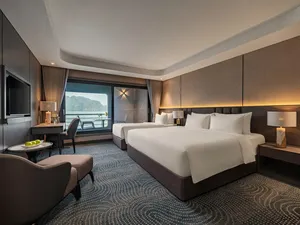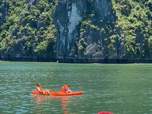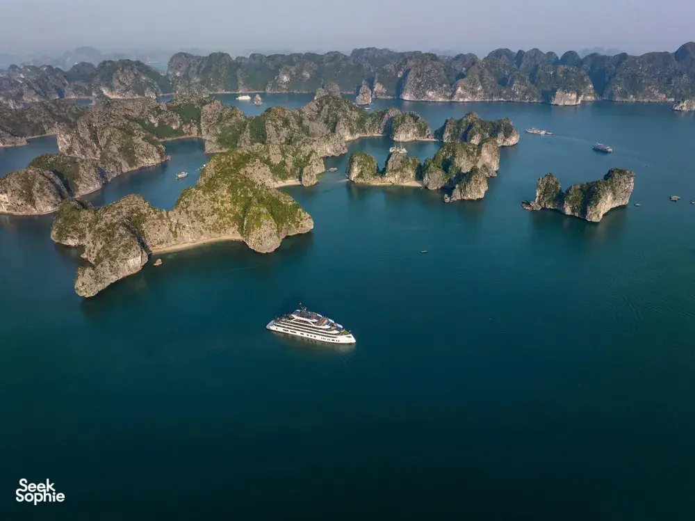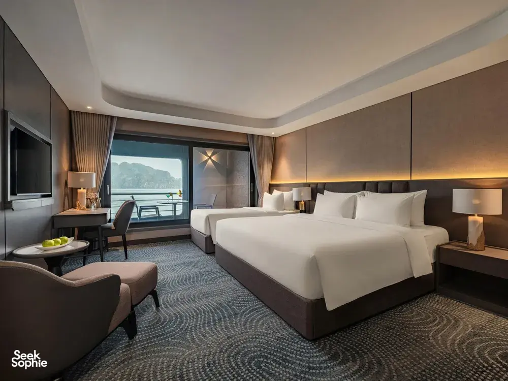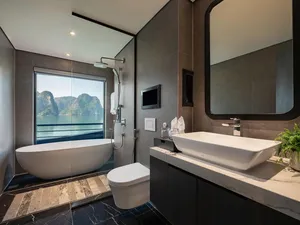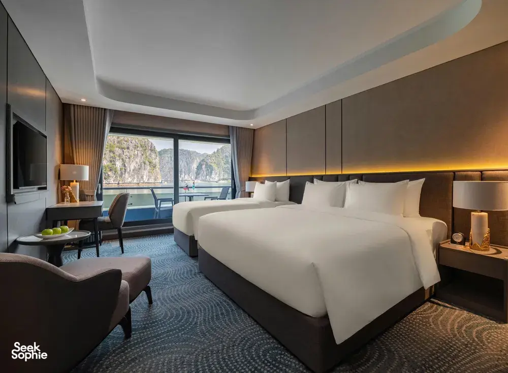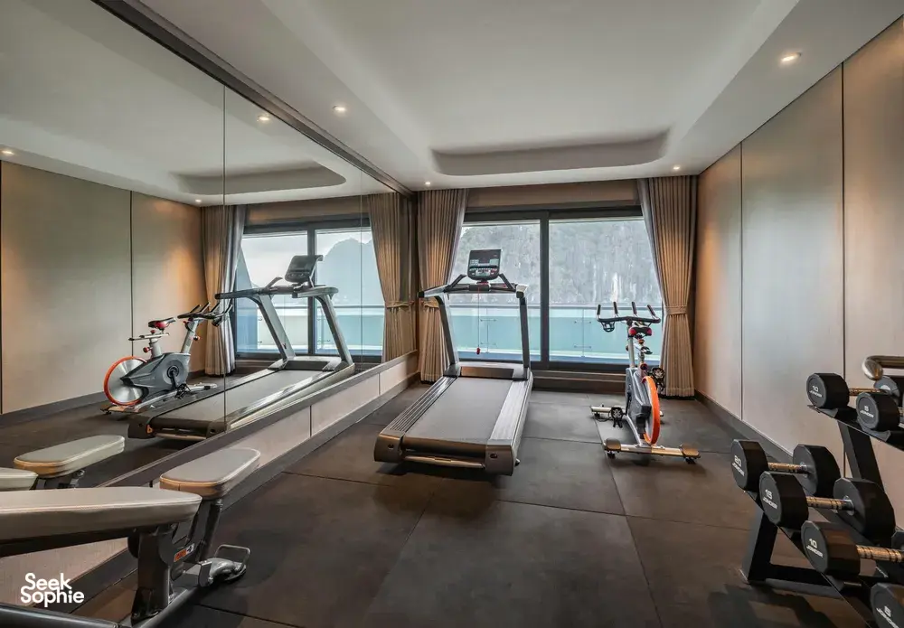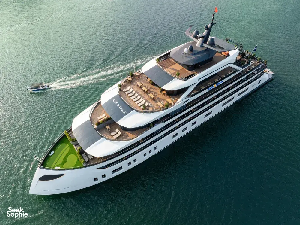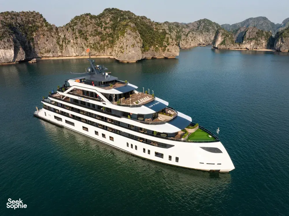 If you want a luxury cruise that’s more than just lounging on deck and kayaking, this one really stands out. This 3D2N Lan Ha Bay trip includes something most cruises skip - exploring Cat Ba Town, with a proper jungle trek up to Ngu Lam Peak, a visit to a hidden wartime hospital cave carved into the mountain. It’s a really nice change from the usual all-on-the-water itineraries.There’s a mini golf course on the sundeck, a four-season jacuzzi, plus a spa, gym, and elevator access between decks. You’ll also find sunset drinks, squid fishing, a kids’ play area, and plenty of space to relax in between activities!It’s also one of the newer cruises on Lan Ha Bay (launched in Dec 2025), run by a team with over 20 years of experience, so service is solid. Great for couples, small families, or anyone who loves luxury.What to ExpectHike to Ngu Lam Peak in Cat Ba National Park - only done by a few cruisesExplore secret wartime Trung Trang Cave hidden deep in the mountainWander Cat Ba Town and grab some downtime like a localCycle through picturesque Viet Hai Village or hop in an electric ride if you preferKayak and swim in calm turquoise bays like Van BoiMorning Tai Chi, sunset tea with ocean views, and Vietnamese cooking classesAll meals included, with fresh seafood and tasty Vietnamese dishesAmenities/facilitiesMini golf course on the sundeckFour-season jacuzziSpa, gym, and elevator access between decksKids’ play area and gamesComplimentary Wi-Fi in common areas (signal depends on bay connectivity).Daily Tai Chi and cooking classesPrivate ensuite bathrooms with tubs & hot showersPrivate balconies with sea viewsAir conditioning, toiletries, bathrobes, and safes in all rooms