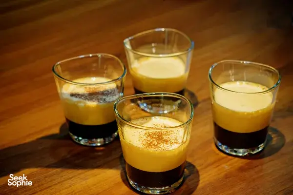 Indulge in a mini coffee tasting featuring Vietnam’s most beloved brews: salted coffee, egg coffee, and coconut coffee. Pick any of your favorite to enjoy as part of the dessert section.