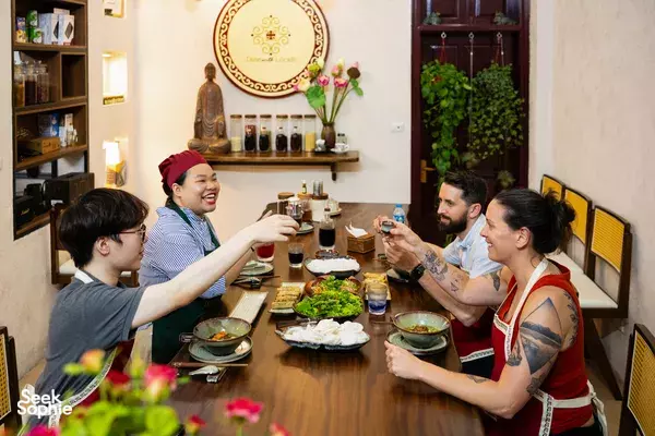 Brace yourself for an extraordinary culinary adventure in the heart of Hanoi. Our enthusiastic local chefs will guide you through the vibrant Ngoc Ha market, where the air bursts with the tantalizing aromas of lemongrass and ginger. Immerse yourself in the local life as you explore the hidden gems and engage with friendly vendors. Your journey continues with an interactive cooking class in a charming local home. Under the expert tutelage of our passionate home cooks, you'll master the art of authentic Vietnamese cuisine. From slicing and dicing with precision to mastering traditional techniques, you'll work alongside our experts, creating a delectable multi-course feast from scratch. Once your culinary creations are complete, gather around the table and savor the fruits of your labor. Exchange stories and laughter as you relish the authentic flavors of your dishes alongside traditional accompaniments. Experience the warmth and hospitality of Hanoi firsthand as our gracious hosts welcome you into their homes and share their cherished culinary traditions.What to ExpectImmerse yourself in the bustling Ngoc Ha market, a treasure trove of fresh produce and local delicacies.Engage with friendly local vendors and sample seasonal fruits and aromatic spices.Learn to prepare four iconic Vietnamese dishes using fresh, locally sourced ingredients.Master traditional techniques and proper cooking methods, from knife skills to balancing flavors.Savor a delightful meal with your fellow travelers and gracious local hosts.Gain insights into Vietnamese cuisine history and culture through folklore and stories.Indulge in a mini coffee tasting featuring Vietnam’s most beloved brews: salted coffee, egg coffee, and coconut coffee. Pick any of your favorite to enjoy as part of the dessert section.This is Perfect for:Passionate foodies: Those who crave an in-depth and hands-on experience to master the art of Vietnamese cuisine truly.Travelers seeking a unique adventure: This activity allows you to roll up your sleeves, delve into local flavors, and create lasting memories.Anyone who wants to learn by doing: This immersive experience is perfect for those who enjoy cooking and taking home new culinary skills.Our Corporate Social ResponsibilityEvery guest who books with us will contribute $1 to our charity meals for pediatric patients in central Hanoi hospitals. Everything we do goes back to the communities we serve, and we cannot fulfill this important responsibility without you.