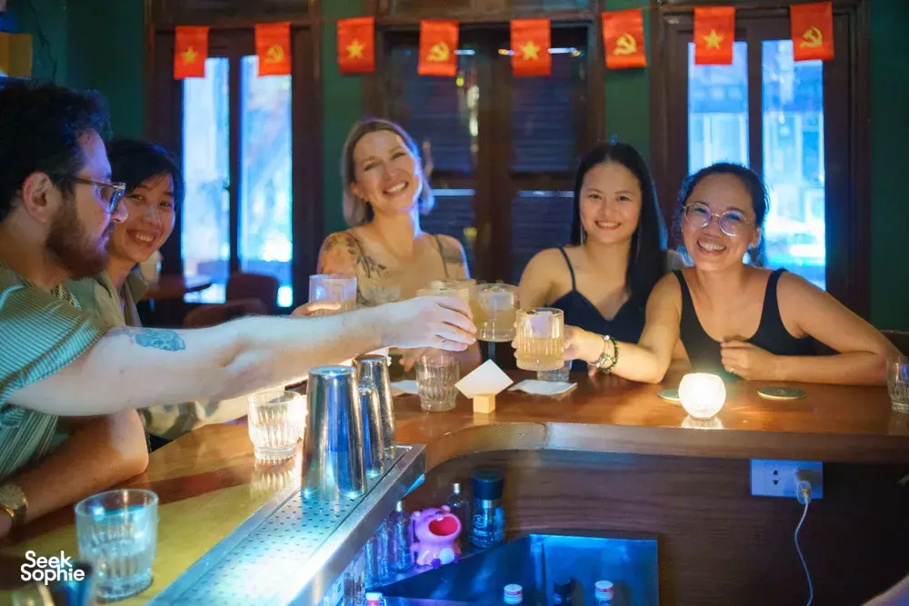 This is not your typical night out in Hanoi. This small-group cocktail experience takes you on a hidden journey through the Old Quarter to discover some of the city’s most hidden and creative bars. Even locals and long-time expats have said they found new gems on this tour - so if you thought you knew Old Quarter, think again!You’ll visit four secret spots: a 120-year-old traditional home, a converted apartment bar, a craft spirits shop focused on locally made Vietnamese bottles, and an experimental mixology spot. You’ll get an exclusive off-menu cocktail at each spot, made just for this experience by some of Hanoi’s top bartenders. Along the way, your host will share stories about the city’s fast-growing cocktail culture and its interesting mix of old-world charm and modern creativity.Whether you're a couple, travelling solo, or with friends - you'll leave buzzing and with a new appreciation for Hanoi’s evolving cocktail scene. If you'd love to experience the city through its secret spots, wildly interesting drinks, and learning the stories behind them, this experience is for you.What to ExpectVisit 4 hidden cocktail bars, from a traditional home to modern mixology spotsEnjoy 4 handcrafted, off-menu cocktails made just for this experienceHear fascinating stories about Hanoi’s cocktail culture and the people behind the barsStroll through the charming alleyways of the Old QuarterSmall group size (2 to 10 guests), led by a fun and knowledgeable hostGood to KnowAdults only (18+)Includes light bites with each drinkMocktail options available - just let us know your preference when bookingWe can cater for most dietary restrictions - tell us ahead of timeExact meeting location will be shared after booking