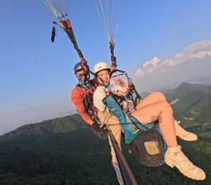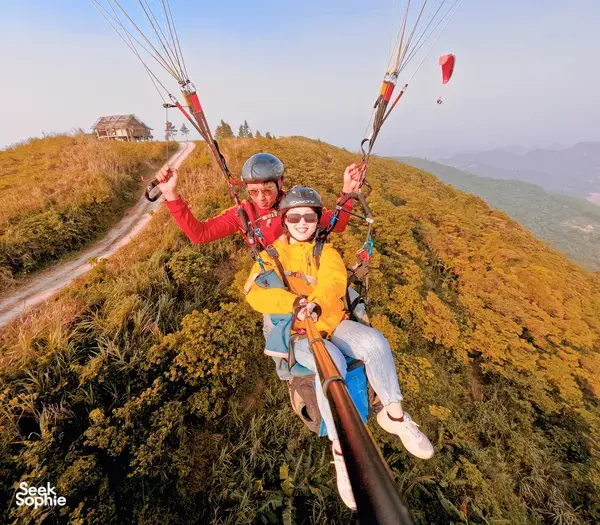 Discover a thrilling paragliding adventure at Doi Bu (altitude ~655 m) or the nearby Vien Nam Mountain, just outside Hanoi. Operated by MeBayLuon Paragliding, launch into the sky like a bird alongside a certified professional guide. Glide gently above emerald fields, quaint villages, and rolling hills on the city’s outskirts — the perfect escape from the bustling streets below.We’ll capture your flight in full HD video and photographs, shot by experienced pilots using GoPro and stabilised gear, so you’ll have a memorable “gliding in the sky” moment to relive.No prior training is needed — you simply need to be in good health and have a passion for exploration. All equipment, harnesses, helmets, and a full safety briefing are included. Weather permitting, your tandem flight lasts about 10–20 minutes (plus the journey up and down).This is your chance to see Vietnam from a completely new vantage point — from above the treetops, fields, and villages. Ready to soar?What to Expect15–20 minute tandem paragliding flight over stunning Bu Hill (depends on weather and your condition)Aerial views of Hanoi’s countryside and blooming hillsides, especially beautiful in late autumnGuidance from professional paragliders with the most flying hours in VietnamComplimentary photos and video from your flight – no need to worry about capturing the momentOptional transfer add-on from Hanoi for a hassle-free dayGood to KnowNot suitable for those who are pregnant, have cardiovascular or bone/joint issues, high blood pressure, fear of heights, neurological concerns, or are under the influence of alcohol/stimulantsYou’ll need to walk a short distance to and from the launch site – terrain is manageable but unevenThe local transfer from the parking area to the take-off point is not included (VND 130,000 per person, paid on-site)Expect to spend nearly a full day here, including transport and waiting time between flights – there's a café on-site if you're waitingBring 4GB of space on your phone to download your flight photos and videosNo smoking is allowed in the flight area, and please avoid stepping on flight equipmentFlights operate depending on weather – be prepared for minor changes to flight order or delaysFacilities & InclusionsTandem flight with a pilot lasting 10-15 minutes depending on wind condition and your healthVideo and photos captured by GoPro provided by MeBayLuon ParaglidingFull safety gear and equipmentFlight certificate includedDrinks at flying siteFull insurance coverage throughout the flightNo extra charge for extending the flight or flying with pets100% refund if weather conditionsag change