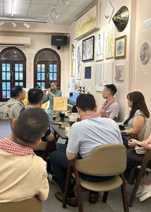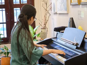 Step into a world where art and music intertwine to paint a vibrant tapestry of Vietnamese culture. Hosted by BamBi, an artist with a lifelong passion for preserving Vietnam’s heritage, this experience is a feast for the senses. Be captivated by the unique melodies of the bamboo flute, skillfully woven with the familiar tunes of the piano, creating a sound that's both nostalgic and refreshingly modern. As you sip on traditional green tea and savor the aroma of charcoal-baked coconut cookies, BamBi’s performance will transport you to the heart of Vietnam, sharing traditions through each note.What to ExpectGet rid of the noise of modern life and start your journey of sound and taste, immersing yourself in the serene melodies and rich flavors of Vietnam.Delve into the world of Vietnamese culture and art through the intriguing artworks displayed at the studio.Experience a live performance by BamBi as she plays four Vietnamese songs on both piano and flute, brought to life through the harmonious blend of piano and flute.Enjoy complimentary refreshments featuring your choice of green tea, made with Oolong leaves harvested before sunrise from the central highland region of Vietnam, or Vietnamese-style coffee.Savor the unique flavors of handmade cookies, made from rice and coconut—both specialties in Vietnam—and baked over charcoal for a distinctive aroma.TipsRelax, engage with the art, and allow yourself to be immersed in the melodies and stories that BamBi shares.