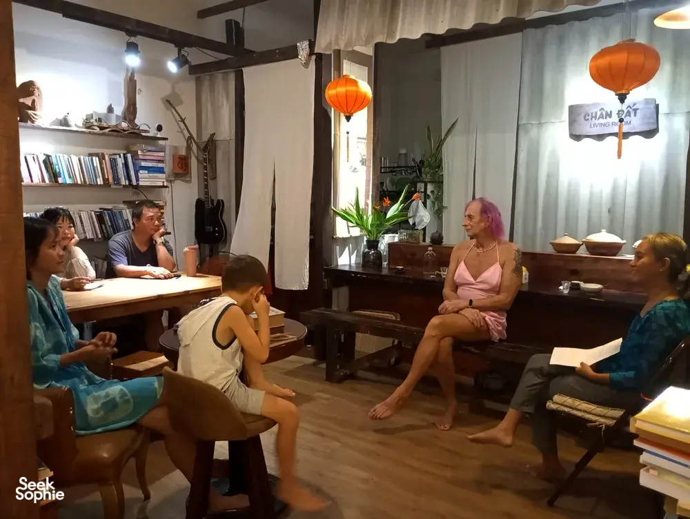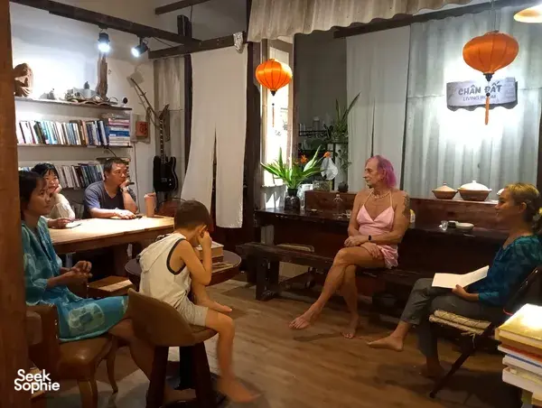 Meet the hosts, Vy and Hiep, two Vietnam-born individuals with a deep love for books, culture, and history. They created this cosy space in Hoi An to share meaningful experiences rooted in Vietnamese heritage and the simple, mindful way of life. Vy and Hiep organise community activities like Vipassana meditation, book discussions, and cultural workshops, all designed to foster genuine connections and appreciation for local traditions. Their approach is warm, down-to-earth, and focused on authenticity, making everyone feel at home. With a passion for sharing Vietnam’s rich history and a commitment to creating a welcoming environment, they invite friends from around the world to enjoy and learn together.