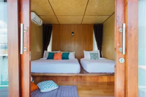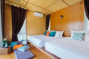 This two-day, one-night lake raft house adventure on Cheow Lan Lake is a must for nature lovers ! Imagine waking up to the sounds of the jungle surrounded by beautiful turquoise waters and green mountains and spending your days kayaking and swimming in crystal-clear waters! While here you will also have the opportunity to head out on boat safaris to spot unique wildlife such as elephants, tapirs and hornbills just to mention a few!What to ExpectSpend the night in a deluxe raft house that offers modern comfort. Each room is thoughtfully designed for a more comfortable stay, unlike any basic raft house, and features private bathrooms for added convenience, plush comfy beds for a restful night’s sleep, and air conditioning to keep you cool and refreshed even on warmer days.Two boat safaris, soaking in the serenity of Cheow Lan Lake, especially magical during twilight and the morning mist.Enjoy a scenic 30–45 minute hike through the lush forest, followed by a 10-minute bamboo rafting experience. Then, explore the Coral Cave, famous for its breathtaking rock formations that resemble coral reefs.Enjoy an exclusive trip with your own private longtail boat. The boat driver also acts as your guide and will take care of you throughout the trip. Please note that they can only speak very basic English.Complimentary kayaking at the rafthouse, allowing you to explore the calm waters of the lake at your leisure and take in the surrounding beauty.Delicious meals throughout the trip, letting you savor the flavors of Southern Thailand.Important NotesAll our rooms have the same bed setup: 1 double bed (6 feet) and 1 single bed (4 feet). Each room can accommodate up to 3 people (perfect for 3 adults, or 2 adults with maximum 2 children).Please note that this raft house does not have wifi and the 4G signal is quite weak and at times does not work at all. Please inform any friends and family that you will be going off grid!Be prepared to get wet during the boat ride, including your belongings. To protect your electronic devices, please bring waterproof bags or covers. Additionally, anticipate sudden rain, as this is a tropical rainforest environment.Electricity is turned off between the hours of 6:00 AM m to 6:00 PM to save on power. You will not be able to charge your phone or other devices until the electricity is turned on.Only cold water shower is available.Please note that the itinerary is subject to change depending on weather conditions to ensure the safety and comfort of all guests.To ensure a pleasant experience for everyone, the use of heat-generating electrical devices (such as an electric kettle) in your room is not allowed, as the resort relies on a power generator. These devices may cause a surge in the power generation system and result in a power outage for the entire resort.Cancellation Policy This trip is non-refundable under any circumstances. However, we are happy to assist you by rescheduling your stay within one year from the date your booking was confirmed. If the booking is not used within that period, it will be automatically canceled.Reschedule PolicyIf you need to reschedule your stay, please notify us at least 15 days before your arrival date. You will receive a new Reservation Confirmation once the reschedule is confirmed. For any further changes, a fee will apply for each rescheduleAdd-onsIf you are coming from Surat Thani, Phuket or Krabi, transportation add-ons are available