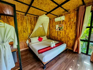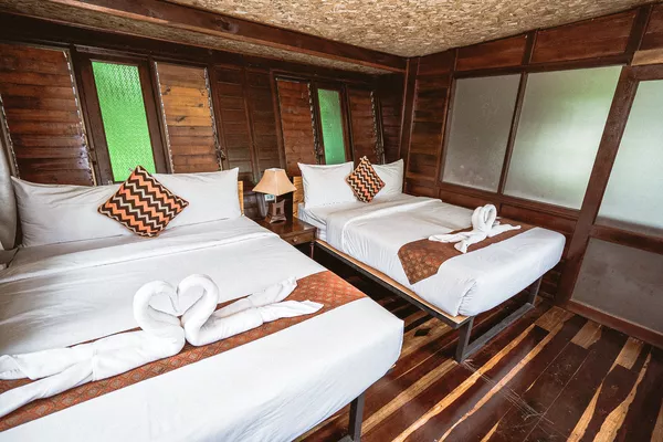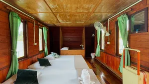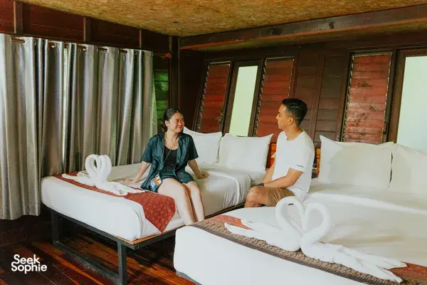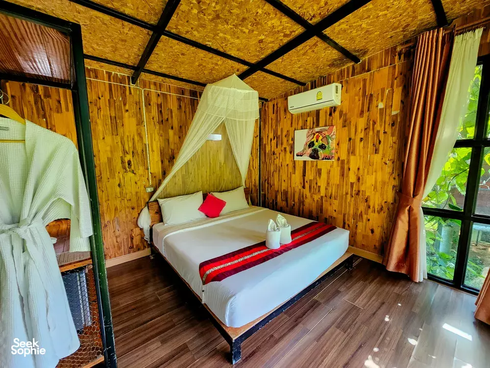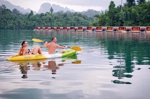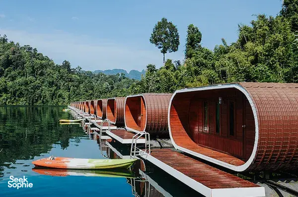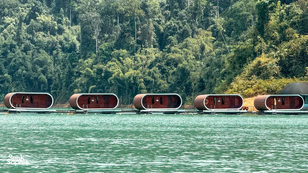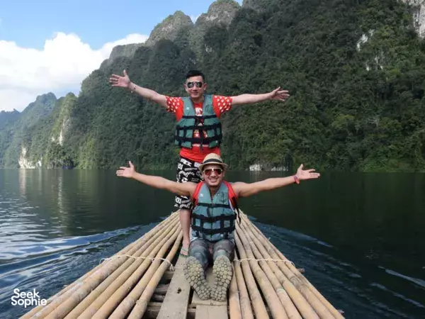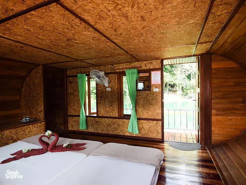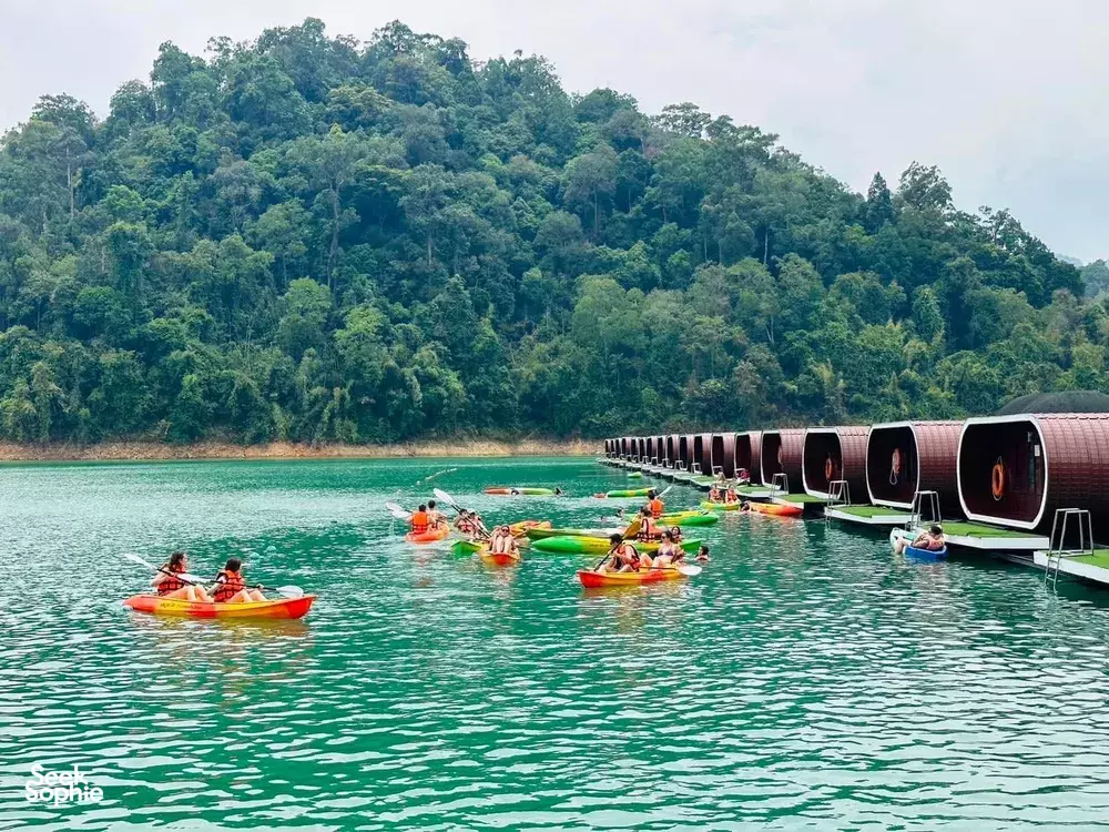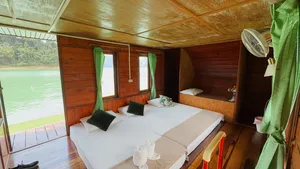 This 3D2N adventure is perfect for travellers who want to experience the best of both jungle and lake in Khao Sok without spending most of the trip in transit. Unlike many tours that start from Khao Sok Village and require long transfers (~1hr) to the lake, this one starts just 15 minutes away! That means you get more time exploring Khao Sok’s Sok River and Cheow Lan Lake, and less time on the road.You’ll spend your first night in a lovely riverside resort and the next in a modern capsule-style raft house with private rooms (and proper mattresses!) floating gently on the emerald lake waters. Of all the raft houses we’ve tried, this one had the best food by far. It’s also the closest to the pier, so you skip the long boat rides — plus it’s got super nice rooms, a bar with cocktails, and (fun fact for animal lovers) even a golden retriever and cat on site!It’s a great option for chilled-out adventurers, couples, or small groups keen for a couple of peaceful days. Those who love soaking in the views will get a kick out of the jungle treks and serene boat rides - there’s also always a chance of spotting monkeys, hornbills, or maybe even a cheeky langur. Best of all, you’ll enjoy two different types of bamboo rafting (jungle river and lake) and stay right by the Sok River on your first night! If you’re craving nature, comfort, and adventure all at once, this is the trip for you.What to ExpectStay your first night at a riverside resort just 15 minutes from Cheow Lan Lake - skip the long transfers. Enjoy a private, comfortable room with an attached bathroom—perfect for relaxing after your journey before the adventure begins.Overnight floating stay in a modern raft house featuring a private, fan-cooled capsule room (no thin mat on the floor!) with shared bathroom facilitiesBamboo rafting on the Sok River, surrounded by limestone cliffs and lush jungleExplore the stunning Cheow Lan Lake with scenic boat rides and cave trekkingEnjoy a memorable visit to Khao Sam Klur (Kui Lin), where stunning limestone karstsJungle treks and bamboo raft ride to Coral CaveKayaking and swimming from your peaceful lake-side retreatMorning wildlife-spotting boat safari and sightseeing on the lakeGood to KnowThe tour program on the lake is a join-in trip, with up to 20 people per boatNo Wi-Fi or phone service at the raft house—time to fully unplug and enjoyWeather may affect activities—some flexibility is needed during rainy seasonThe National Park, Wildlife & Pier Fees are included (approx. 540 THB per adult / 270 THB per child, payable in cash)Day trip boats sometimes stop at the raft house during the day—expect a bit of buzz in the common areas during peak season, which runs from November to April when many visitors come. If you don’t mind the occasional rain, we recommend visiting around May to June or September to October for a quieter, less crowded experience.This trip is non-refundable—please be sure of your plans before bookingPlease note that this trip requires a minimum of 2 participants to operate.Amenities/facilitiesNight 1 – Riverside Resort:Private air-conditioned room with mountain view terrace (Photos in the accommodation section show the first-night room only. See the main photo section for rooms on other nights.)Private bathroom with hot shower, towels, bathrobe, and toiletriesTV, Wi-Fi, mosquito net, fridge, and clothes rackOn-site restaurant (open from 8 AM until 7:30 PM)Night 2 – Floating Rafthouse :Private capsule-style room with 3 single beds (3 ft. each) — all rooms have the same layout (see photos in main section).Fan-cooled with comfy floor mattresses, pillows, blankets & basic toiletries (bring your own toothbrush + toothpaste!)Shared bathrooms (cold showers only)Complimentary kayaks & life jackets providedElectricity from 6:00 PM – 6:00 AM
