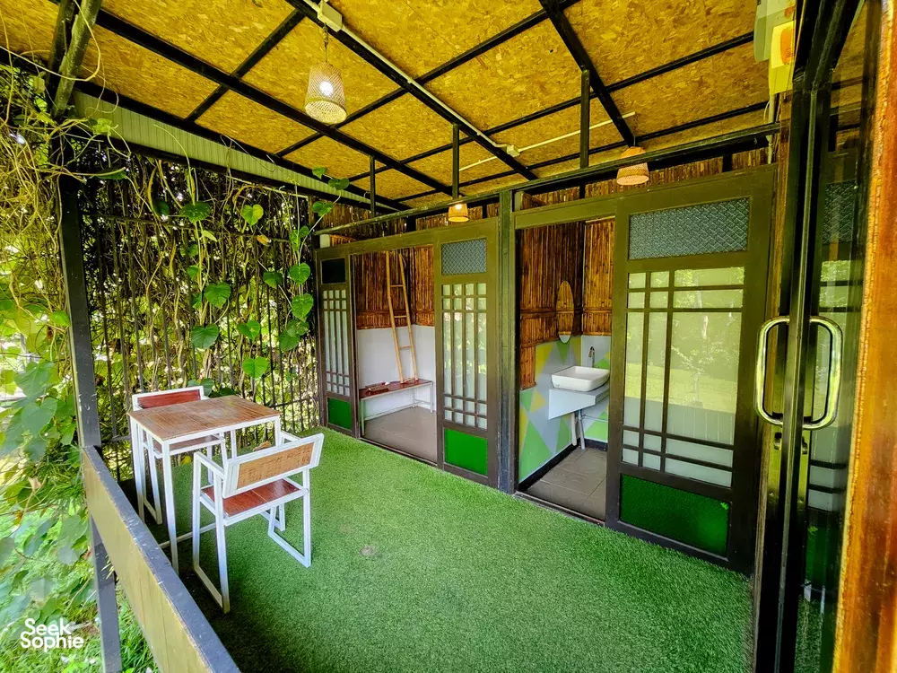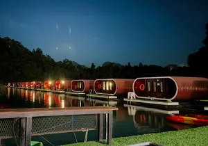 Accommodation in a private capsule room for your group at the raft house, including essential toiletries (towel, soap, shampoo), pillow, blanket, and floor mattress