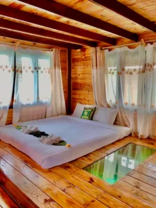 Unlock the hidden gems of Cheow Lan with a 2-day, 1-night private tour without the hassle of group tours. This adventure is all about YOU! Your private floating bungalow, and your own dedicated guide who knows Cheow Lan like the back of their hand. Go at your own pace as you cruise the emerald waters in your own boat, enjoy a private boat safari to spot exotic wildlife. From the moment you arrive, you'll be treated to top-notch hospitality, with English-speaking support every step of the way!Take your journey to the next level with a hike through lush jungles to a secret waterfall or breathtaking viewpoint. Then, cap off your day with a sunset boat safari, where you could catch sight of playful monkeys, colorful hornbills, and maybe even a wild elephant!But here’s the best part: You get to decide how your trip unfolds! Fancy a longer swim? Or maybe you want to linger at that perfect sunset spot? Your guide will tailor every moment to your wishes.Ready for the ultimate personalized getaway? Book now and get ready for memories that will last a lifetime. Your private escape awaits!What to ExpectA Private & Flexible Experience : No big groups, no strict schedules. You’ll have your own longtail boat and personal guide, so you can explore at your own pace and enjoy a stress-free trip.Floating Bungalow Stay : Stay in a fan-cooled, homey floating bungalow with a private bathroom, right on the emerald-green waters of Cheow Lan Lake. Wake up to misty lake views and the sounds of the jungle—a truly magical start to your day!A Private English-Speaking Guide : Your guide will be with you every step of the way, offering in-depth insights into the stunning Cheow Lan Lake and its wildlife, while ensuring you enjoy the highest level of hospitality and a seamless, unforgettable experience.Jungle Adventures : Hike through the rainforest to a hidden waterfall or a scenic viewpoint, surrounded by lush greenery and wildlife.Evening and Morning Boat Safaris : Hop on a boat in the golden hour for a chance to spot playful monkeys, colorful hornbills, and maybe even a wild elephant.Delicious Local Meals : Enjoy authentic Thai cuisine, freshly prepared and served right by the water with stunning view.Complimentary Kayak & Plenty of Time to Explore : Swim in the refreshing lake, hop on a complimentary kayak and paddle through peaceful waters, or simply relax and soak in the scenery.A Perfect Mix of Adventure & Relaxation : Whether you want to unplug and unwind or explore and discover, this trip offers the best of both worlds. Expect stunning landscapes, unforgettable moments, and a truly unique way to experienceTips and Important Notes (Please take a moment to read everything carefully to ensure a seamless and enjoyable experience.)Welcome to the Off-the-Grid Life! – Your floating rafthouse is in the heart of nature’s paradise, far from the noise of the outside world. No WiFi, no phone signal—just pure, peaceful jungle vibes. Time to unplug and soak it all in!You’ll have your own private raft house, boat, and guide, but keep in mind that other travelers will be staying in separate raft houses. Expect a friendly, social vibe, especially during peak season (November–April)! Attractions like caves and viewpoints may also have visitors.Mother Nature likes to keep things interesting! Weather and lake conditions may shake up the plan, but don’t worry—your guide is here to make sure you still have an epic adventure. A little flexibility = a lot of fun! The rainy season around Khao Sok typically runs from May to October, with the heaviest rainfall usually in August and September. During this time, rivers and lakes can rise, and some outdoor activities—like hikes or cave visits—may be affected. On the bright side, there are fewer people on the lake, giving you a more peaceful and private experience.Cash for the Park Fees – The national park entrance fee isn’t included, so bring 540 THB per adult / 270 THB per child in cash. No ATMs in the jungle, so come prepared!Pack Light, Pack Smart – A small, waterproof backpack is your best friend here. Boats = splashes. Rainforest = possible rain. Keep your stuff dry and happy!There’s no early morning bus from Ao Nang or Phuket, so make sure to arrive in Khao Sok the night before. That way, you’ll wake up refreshed and ready for adventure!The rafthouse is all about that cash-only life. If you want extra snacks, drinks, or an extra meal, be sure to bring some extra baht!About the rafthouseDrift off to sleep in this charming wooden raft house! With a fan to keep you cool, a comfy mattress on the floor for a restful night, and a non-ensuite private bathroom, you’ll have everything you need for a peaceful stay. We’ve got you covered with a blanket, pillow, and towel-just bring your sense of adventure! (Check out the photo for a sneak peek!)Please be aware that there is no Wi-Fi, and the 4G signal is weak and may not work at times. We recommend informing your friends and family in advance that you'll be off-grid.To conserve energy, electricity is available from 5:30 PM to 9:00 AM and will be turned off during the day. This means you won’t be able to charge your phone or other devices until the power is restored.Only cold water showers are available.Kayaks and life jackets are provided at each rafthouse.Cancellation Policy:Customers can cancel their booking up to 15 days before the trip date for a full refund. Cancellations made 14 days or less before the trip date will not be refunded. Please ensure to notify us in advance if you need to cancel your reservation.