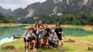 Join Leam, your local guide with a heart full of stories and a deep love for the wild, on a journey through Khao Sok that’s as heartfelt as it is adventurous. Leam knows every hidden corner of the lake, every call of the birds, and every secret spot to escape the crowds. With his fun, laid-back style and deep knowledge of the area, this tour promises to be more than just a day trip – it’s an experience you’ll carry with you long after the sun sets.You’ll start the day gliding across the emerald waters of Cheow Lan Lake, surrounded by towering limestone cliffs, before trekking through lush jungle and floating by bamboo raft into hidden caves. Refuel with a home-cooked Thai lunch at a floating rafthouse, take a dip in the lake, then unwind with a secret coffee stop at one of Leam’s peaceful hideaways. End the day watching the sunset at Khao Sam Kloe and exploring a local market for some delicious street bites — the perfect close to an unforgettable day.What to ExpectLeam is not just your guide; he loves sharing stories. You’ll hear interesting tales about the history of Khao Sok, the local culture, and the plants and animals in the area. His love for this place will help you feel connected to it.This is a private tour, which means it’s all about you! Leam is flexible and happy to change plans based on what you want to see and do, making sure you have the best time.Hop aboard a traditional longtail boat and cruise through stunning limestone landscapes.An easy 45-minute jungle walk to the cave, spotting wildlife along the way.A serene bamboo raft ride to an enchanting cave filled with stunning stalagmites and stalactitesSavor a delicious lunch at a unique rafthouse on the lake around noon.Relax at the raft house and enjoy swimming or kayaking.Visit the Khao Sam Kloe the iconic symbol of the lake.Conclude your adventure with a visit to a local market, sampling vibrant Thai street food and experiencing the local culture.TipsLeam is full of knowledge, so don’t hesitate to ask about the history, wildlife, or even personal stories about life in Khao Sok.Wildlife can be shy. Stay alert and listen carefully for rustling in the trees or bird calls for a better chance of spotting animals.During rainy sesaon [July - October] Khao Sok’s weather can be unpredictable. A lightweight rain jacket and sunblock will have you covered. A small dry bag is handy for keeping your belongings safe from splashes or unexpected rain.
