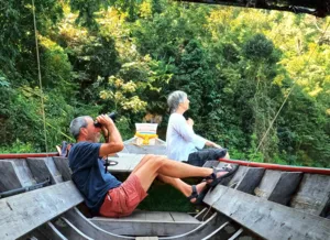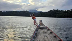Longtail boat trip, spot wildlife, cave exploration, lake swim, and local market visit.