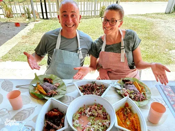Discover Sabah’s rich culinary heritage in this Kadazan-Dusun cooking class. Guided by warm and welcoming local hosts: Auntie Cindy, Auntie Winnie, or Chef Bonny—you’ll embark on a flavorful journey through the history, culture, and techniques behind Sabahan cuisine.Learn to cook unique dishes you may never have heard of before, with recipes lovingly passed down through generations. Along the way, you’ll also explore the region’s fresh produce and discover how locals incorporate these ingredients into their daily meals, turning simple, homegrown staples into memorable dishes.This immersive experience goes beyond cooking—it’s a chance to connect with local traditions, understand the stories behind the food, and bring a piece of Sabah back to your own kitchen.This 3-hour hands-on workshop focuses on authentic cooking, with all ingredients prepared for you. Participants will learn to cook traditional Kadazan-Dusun dishes such as:Linopot (Hill Rice) – A traditional Sabahan staple, rice wrapped in leaves, once carried by villagers into the fields or forest. Fragrant, earthy, and deeply tied to local heritage.Hinava (Sabah Ceviche) – A refreshing dish of fresh fish cured in lime with ginger, chilli, and native herbs. Light, zesty, and one of Sabah’s most iconic specialities.Tuhau – A uniquely Sabahan relish made from wild ginger, often mixed with chilli and lime. Bold, aromatic, and a true taste of Borneo’s rainforest.Ikan Basung – A classic local fish dish, prepared with traditional spices and cooking methods passed down through generations.Ambuyat – A sticky sago starch delicacy, eaten with flavourful side dishes. Fun to eat with a traditional “chopstick swirl” and an absolute must-try for anyone curious about Sabahan cuisine.The session ends with a hearty lunch of your own dishes, plus a recipe booklet to continue the journey back home.Good to knowDietary needs—including vegetarian, gluten-free, or no pork—can be catered for with advance notice.Pick-up and drop-off from Kota Kinabalu city centre are included. Kindly share your pick-up address in advance.Whether you’re curious about local food culture or simply love to cook, this immersive experience offers a meaningful taste of Sabah, shared with passionate locals.