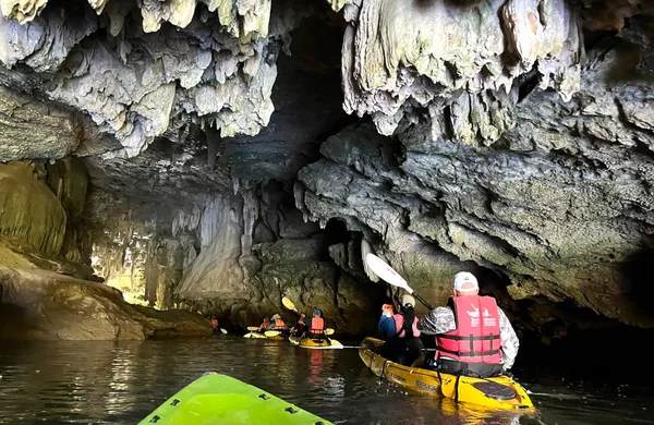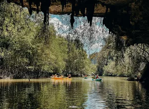 Embark on a day of serene temples, hidden caves, and breathtaking viewpoints with Yu, your enthusiastic guide. This Krabi adventure blends cultural exploration with active kayaking and tranquil nature walks, creating a truly unforgettable experience. From paddling through ancient caves adorned with prehistoric paintings to exploring the unique ecosystem where freshwater mingles with saltwater in the mangroves, this journey offers a taste of Krabi's diverse beauty. The grand finale? Jaw-dropping panoramic views from Khao Thong Viewpoint overlooking the coastline and Andaman Sea.What to ExpectBegin your day with a visit to the peaceful Mahathat Laem Sak Temple, taking in the architecture and sweeping views.Embark on a 4 km kayaking adventure to Phi Hua To Cave, home to ancient paintings, and then navigate the tunnel-like Tham Rod Cave.Enjoy a delicious Thai lunch at a local restaurant (cost not included).Explore the enchanting Thapom Klong Song Nam, where freshwater meets saltwater amidst lush mangroves.Conclude your day with stunning panoramic views from Khao Thong Viewpoint.Important NotedWe kindly encourage visitors to dress modestly while visiting temples, in respect of local customs and traditions.TipsLunch is not included in the tour price, so remember to bring some cash.The hike to Khao Thong Viewpoint is relatively short (1.5-2 km one way) but can be steep and uneven in places, so wear comfortable shoes suitable for light hiking.