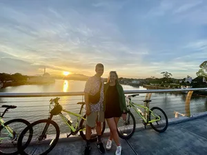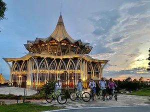 This gentle bike ride takes you beyond the typical tourist trail. Cycle during golden hour through peaceful kampongs and on both sides of the Sarawak River, meet the locals, and soak in the relaxed village vibes as the sun begins to set.Unlike many city tours, this one takes you off the beaten path — you'll visit traditional Malay communities and even take a sampan boat across the river as the sky turns pink. Perfect for anyone looking for a relaxed but meaningful way to learn about Kuching through its people. If you're after a fun, easy-going ride with great stories, village views and a delicious local dinner, this is for you.What to ExpectCycle through lesser-known kampongs and see daily village life up closeVisit traditional wooden stilt houses along the river banksCross the Sarawak River in a classic sampan boat at sunsetSoak in the calm, golden hour atmosphere locals enjoy each eveningEnjoy a tasty street hawker-style dinner after your rideGood to KnowThis is a relaxed, easy-paced ride suitable for most fitness levelsTour lasts around 3 hours and takes place in the early eveningBike, helmet, and water bottle providedRain ponchos included in case of rainTransport to the meeting point is not included – do plan ahead