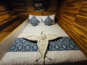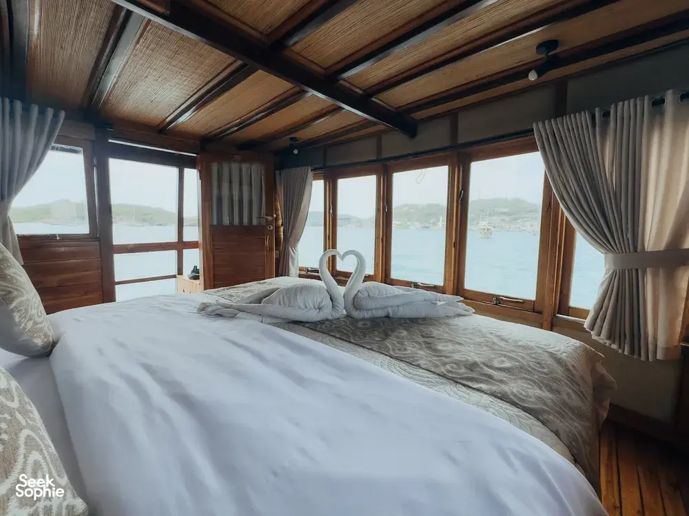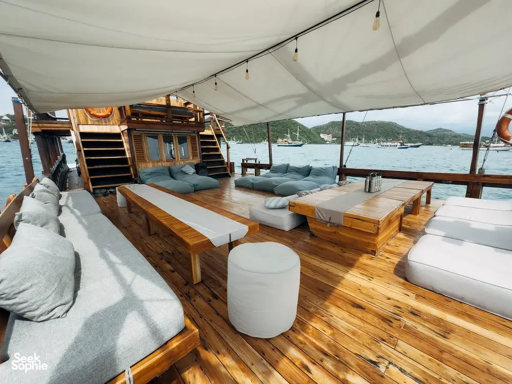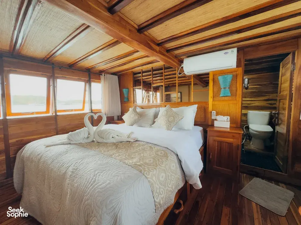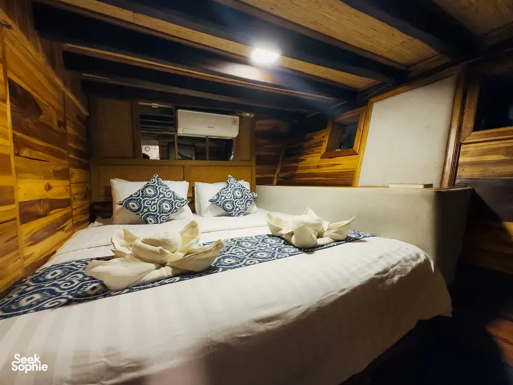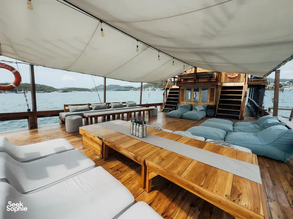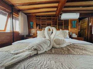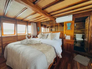 Step aboard a private 3-day, 2-night adventure through Komodo National Park on a beautifully crafted wooden phinisi. This isn’t just a boat trip – it’s a floating retreat with everything you need for a fun and comfortable getaway. You'll explore iconic spots like Padar Island and Pink Beach while also discovering hidden gems far from the usual crowds. Paddleboard over crystal-clear waters, and float lazily in the sun.This private Phinisi boat is fully decked out with all the comfort and on-board activities for a comfy stay. All the cabins are AC with ensuite bathrooms, and there is a cosy common area stocked with board games, a projector for entertainment, and unlimited coffee and tea. It’s perfect for families, couples, or groups of friends who want a more intimate and immersive journey through Komodo’s stunning landscapes!Plus, this is an eco-conscious trip – the boat operates with a zero-plastic policy and supports sustainability initiatives, including tree planting to offset its impact. So, if you’re looking for a meaningful, crowd-free way to explore Komodo, this is it!What to ExpectThree days and two nights exploring Komodo National Park at your own pace with a private groupStay in a beautifully crafted wooden phinisi with six air-conditioned cabins, each with an ensuite bathroomKayak, paddleboard, or float in the pristine waters of secluded beachesSnorkel with manta rays, turtles, and vibrant marine lifeIndulge in daily meals, unlimited coffee and teaEnjoy onboard entertainment with a projector, board games, and activities for kidsVisit iconic sites like Padar Island, Pink Beach, Komodo Island, and hidden spots away from the crowdsGood to KnowEntrance fees to Komodo National Park, Padar Island, and other locations are not included – prepare cash for theseIf you plan to bring a drone, you’ll need to get a permit for Komodo National ParkItineraries may be adjusted due to weather conditions or park regulationsEco-conscious experience – operates with a zero-plastic policy and supports conservation effortsInfants (0-24 months) join for free, and discounts apply for younger children – ask for detailsBoat Specification & Safety EquipmentCapacity: 12 guests + 2 extra bedLength: 30 metersWidth: 6 metersEngine: Mitsubishi 8 cylinder M20Generators: Mitsubishi 4D30 22KVACruising Speed: 8-12 knotsWater Maker: 8000 Liters/8 hoursFuel Capacity: 5000 LitersSpeedboat: 7 meters length x 2 meters width with 2 x 40 pk Yamaha machineNavigations: Radar, Echo sounder, GPS Navigator, Radio VHF, CompassSafety Equipment: x2 Life raft 15 person, life buoys, life jacket, oxygen tank, fire extinguisher, first aid kitTotal Cabin: 6 guest cabins (2 Upper deck + 4 lower deck)Boat Facilities & AmenitiesAll-day tea, coffee & waterBoard games, cards, chess, watercolors & coloring booksSnorkel equipmentStand-up paddleboardsFloatsSound systemFree WIFIRoom details - 6 guest cabins (2 Upper deck + 4 lower deck)1 Master cabin (upper deck): King size bed + extra bed, with panoramic ocean view, AC, and ensuite bathroom with hot and cold water. Max guests 3 (with additional bed).1 Suite cabin (upper Deck): King size bed + extra bed, with ocean view, AC, and ensuite bathroom with hot and cold water. Max guests 3 (with additional bed).4 Deluxe cabin (lower deck): King size bed, AC, and ensuite bathroom with hot and cold water. Max guests 2.Child & Infant Pricing:Infants (0-24 months): Free of charge.Children (2-5 years old): Please contact us for more details on available discounts. Discounts apply only if the child is the 3rd or 4th guest in the booking or if an extra bed is required.Children (6 years and above): Same pricing as adults.