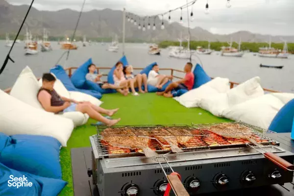 This is the only traditional phinisi in Komodo with a floating sea pool - a great choice if you want to experience the best of Komodo and actually enjoy the boat itself.It’s also one of the larger boats we have on Seek Sophie (20–24 guests), so it’s great if you’re keen to meet other travellers and make friends. You can chill together on the spacious sun deck, paddle on the SUPs, or float in the sea pool!Guests have mentioned how much they like the cabins. They have a boutique hotel feel with AC, blackout curtains, and ensuite bathrooms with hot water.Food is a big highlight too - and the chef is happy to tailor dishes to your preferences, whether that’s less sugar, less spice, or vegetarian options. The crew is also known for being really attentive, and there’s a photographer on board who’ll help capture the trip on GoPro and drone, so you don’t have to worry about documenting everything yourself.So if you’re the kind of traveller who wants adventure, a boat you’ll actually enjoy hanging out on, and making friends, this is a really solid pick!Note: If you’re looking to charter this boat privately for your family or friends, check it out here.What to ExpectThree days and two nights exploring the Komodo National ParkSailing on a beautifully crafted traditional PhinisiOpportunities for snorkelling, trekking, and discovering hidden covesWitnessing Komodo dragons in their natural habitatEnjoying breathtaking sunsets over the islandsFun amenities such as paddleboard and floating poolAll meals, snacks, and non-alcoholic beverages are included onboardKomodo Park FeesThe Komodo National Park Authority has issued new regulations which require visitors to preregister and pay for their park fees in advance in order to secure their entry, previously park fees were collected directly from customers on the day of the trip. As a result we have included the national park fee into the price of the listing as of 4 March 2026.Boat Facilities & AmenitiesYear Renovated: 2024Cabins: 2 Master Cabin, 4 Deluxe Cabin, 4 Superior Cabin - all airconditioned, ensuite bathrooms with hot waterCapacity: 20 pax (24 maximum with extra beds)Spacious deck for relaxation and socialisingSnorkelling gear and life jackets providedPaddleboard and floating poolKaraoke setMinibarNotesThe floating pool will be set up out at sea, but its availability depends on tide and current conditions to ensure guest safety and comfort. The crew will assess daily conditions and deploy the pool when it is safe and suitable to do so.This trip is available all year round, but during the rainy and low season (December to March), trips may not run every Friday due to lower demand. A minimum of 10 people is required for the boat to depart. If you're planning to travel during this period, please reach out to us. The upside of visiting in the low season is the peaceful, less crowded experience!Cabin Details1 upper deck master cabin (Hanoman): 1 king bed + extra bed, ensuite bathroom, bathtub, private balcony1 main deck master cabin (Arjuna): 1 king bed + extra bed, ensuite bathroom, bathtub2 upper deck deluxe cabins (Drupadi & Pandawa): 1 queen bed + extra bed, ensuite bathroom2 main deck deluxe cabins (Aswatama & Kurawa): 1 queen bed, ensuite bathroom4 lower deck superior cabins (Nakula, Sadewa, Dawala, Badranaya): 1 queen bed, ensuite bathroomTip: As Nakula and Sadewa cabins are closer to the engine room, we recommend bringing earplugs.Child Pricing:Children (below 2 years old): Free of charge.Children (2-5 years old): Please contact us. We will be able to provide you further information on discounts.Children (above 5 years old): Same pricing as adults.