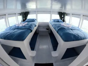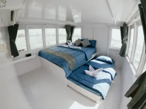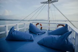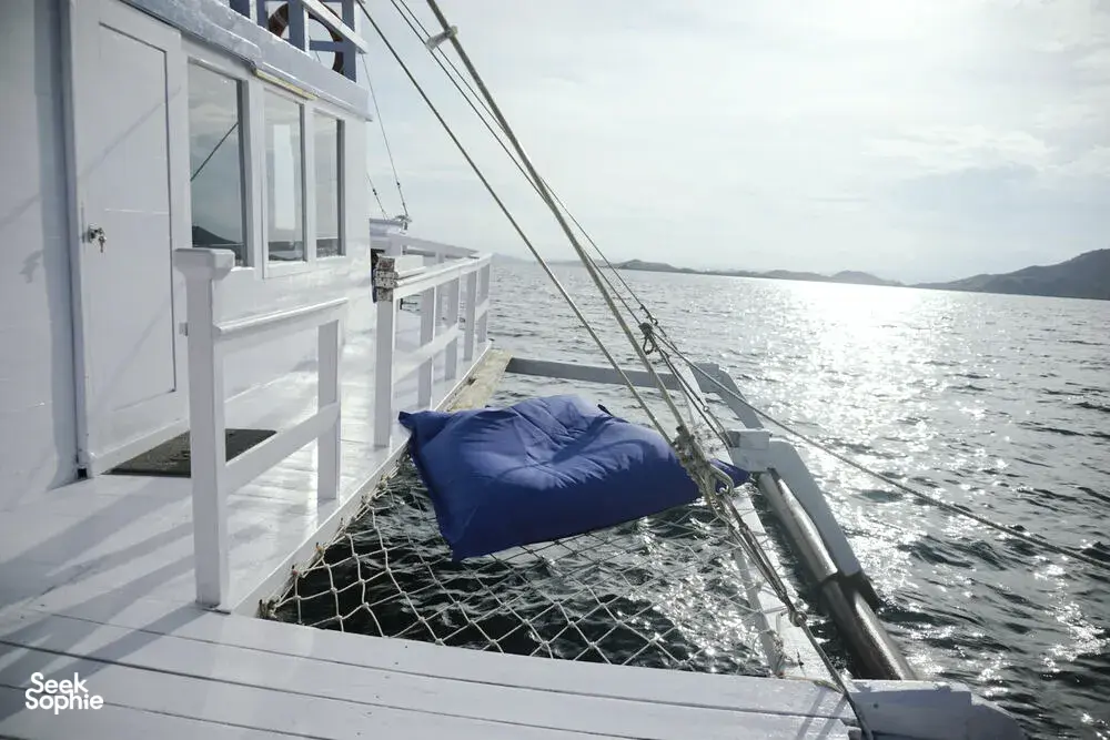 This 4D3N boat trip is a slower, more immersive way to explore Komodo National Park than the usual 3D2N trips or pricey 4D3N private charters.With the extra day, you won’t feel rushed and can truly enjoy each destination, making it a great option if you have the time.The extended itinerary means you'll visit hidden gems that most standard 3D2N trips don’t reach like Gili Lawa, Pengah, and Mawan - quieter spots with vibrant corals and possibly higher chances of seeing mantas. You’ll also do a sunset hike at Padar Island for a less crowded experience compared to the typical sunrise hike.Onboard, the cabins and bathrooms are simple but comfortable, with cosy beds, AC, and hot water. There’s a rooftop deck with beanbags, but our favourite part of the boat has to be the lounge nets - perfect for napping, reading, or just chilling as the boat sails.Guests often mention how knowledgeable and fun the crew are. Plus, with a designated professional photographer onboard, you can relax and enjoy the trip while they capture the best moments on camera, GoPro, and drone.Seek Sophie Tips:There is free flow of water, coffee and tea, but you’re welcome to bring your own drinks if you prefer.Bring ear plugs to help you sleep better at night, as some rooms are closer to the engine.What to ExpectRelaxed 4D3N shared boat journey with fellow travellers.Beautiful renovated wooden boat with nets and comfy bean bag for chilling.Unforgettable island excursions including hikes, snorkelling, and wildlife encounters.You’ll get to visit more stops such as Gili Lawa, Pengah, and Mawan - destinations most 3D2N open trips don’t reach - with the possibility of spotting manta rays, plus a sunset hike at Padar Island for a less crowded, more atmospheric view.Enjoy guided hikes to panoramic viewpoints and see Komodo dragons in the wild.Snorkel in crystal-clear waters, swimming with manta rays, turtles, and vibrant coral reefs.All meals onboard, snacks, and drinks included.Memorable photos taken with professional gear, including a drone.Supportive crew dedicated to making your trip easy and fun.Good to KnowItinerary may change depending on weather and sea conditions to ensure safety and comfort.Includes all meals, snacks, and onboard beverages like mineral water, coffee, and tea.Snorkelling gear is provided, but feel free to bring your own if you prefer.Life jackets, bath towels, and beach towels are provided.Suitable for all fitness levels; some hikes involve steep terrain but are manageable.The boat has air-conditioned cabins - choose from private or shared rooms.Bring extra cash for park entry fees and any personal expenses.Arrival and departure transfers are included, and the boat picks up from designated locations in Labuan Bajo.Boat Facilities & AmenitiesAir-conditioned cabins with ensuite or sharing bathrooms.Hot showers, towels, and toiletries (soap & shampoo) provided.Mesh hammock and bean bag available for chilling.Indoor dining area with sea view.Snorkelling gear available to use.Room Options (4 Cabins on 3 Decks)Triple Room (Upper Deck): Sea view, AC, double bed + 1 single bed, ensuite bathroom.Dorm Room (Main Deck): Sea view, AC, 4 bunk beds, shared bathroom.Child Pricing:If you plan to bring children, please check with us in advance to confirm availability.Children (below 5 years old): Free of charge and will share a bed with the guardian.Children (5 years and above): Same pricing as adults.