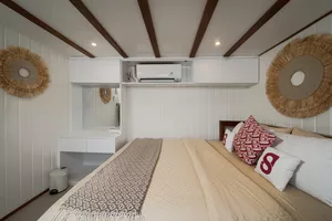 Luthfi Hakim 是一名来自西苏门答腊的工程师,非常热爱探索。自 2009 年以来,他踏遍了印尼各地,并于 2015 年定居在 Labuan Bajo。在多年来与旅行社和船只合作的经验后,他决定打造属于自己的 Phinisi 船——一艘由南苏拉威西 Konjo 匠人手工打造的经典木制游艇。花了两年时间将一艘货船改造成如今这艘优雅的船只,现在航行于 Labuan Bajo、Sumbawa、Bali 和 Alor 之间。不仅创造独特的旅行体验,Luthfi 也确保他的船以环保方式运作——使用可重复使用的水杯、油水分离器防止污染、采购本地物资,并积极参与海滩和海洋清洁活动,回馈当地社区。