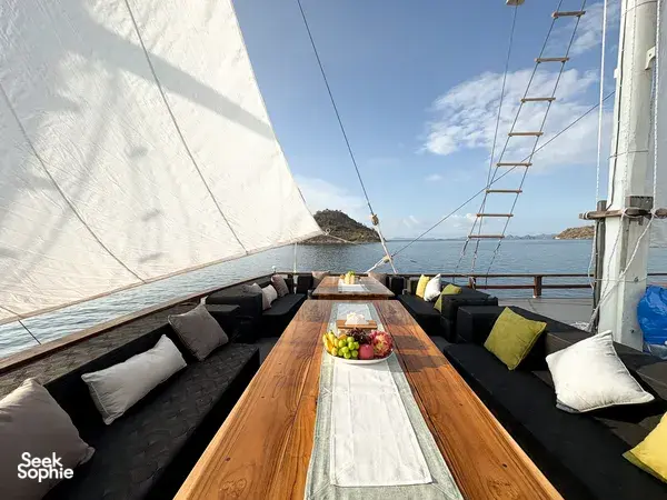 Marianus and Margareth founded the company in 2025, bringing years of hands-on experience from Komodo’s diving and hospitality scene. They, who often stay onboard themselves, ensures every trip runs smoothly and responsibly. The boat is staffed entirely by local people from Labuan Bajo and Bira, reflecting their commitment to supporting community livelihoods and preserving local expertise. They focus on ethical wildlife interactions and make it a point to keep their trips eco-friendly, doing beach and underwater clean-ups after each journey. It’s clear they care deeply about protecting the ocean and respecting the people who live by it, making each adventure not just fun, but meaningful for all involved.