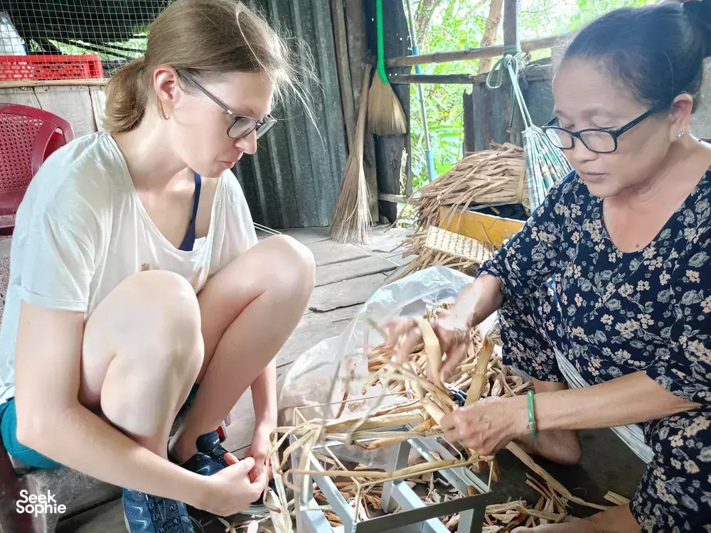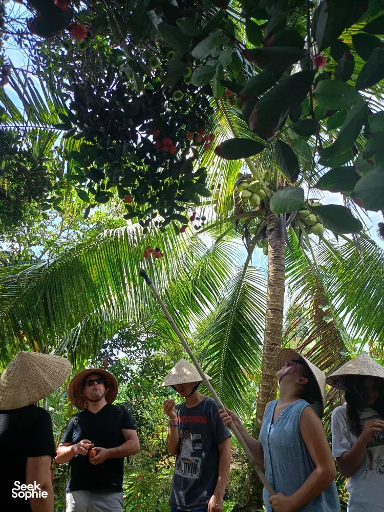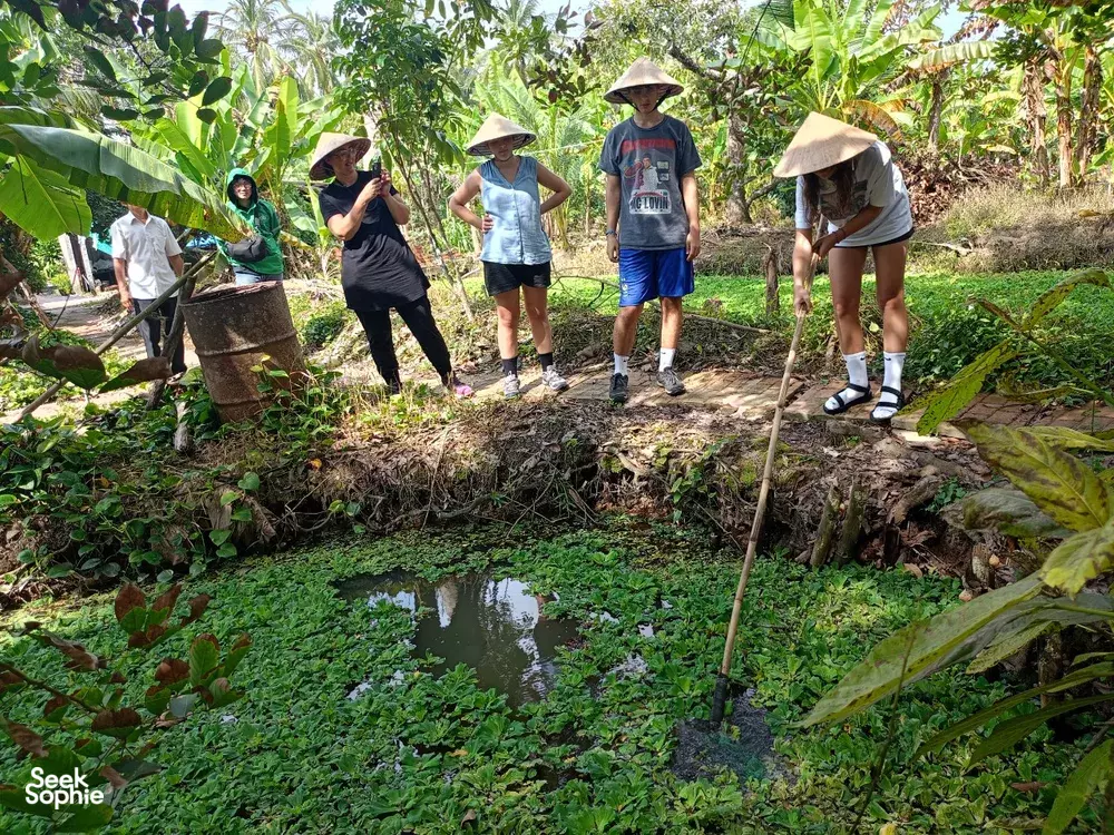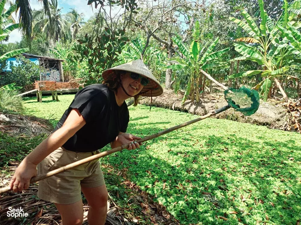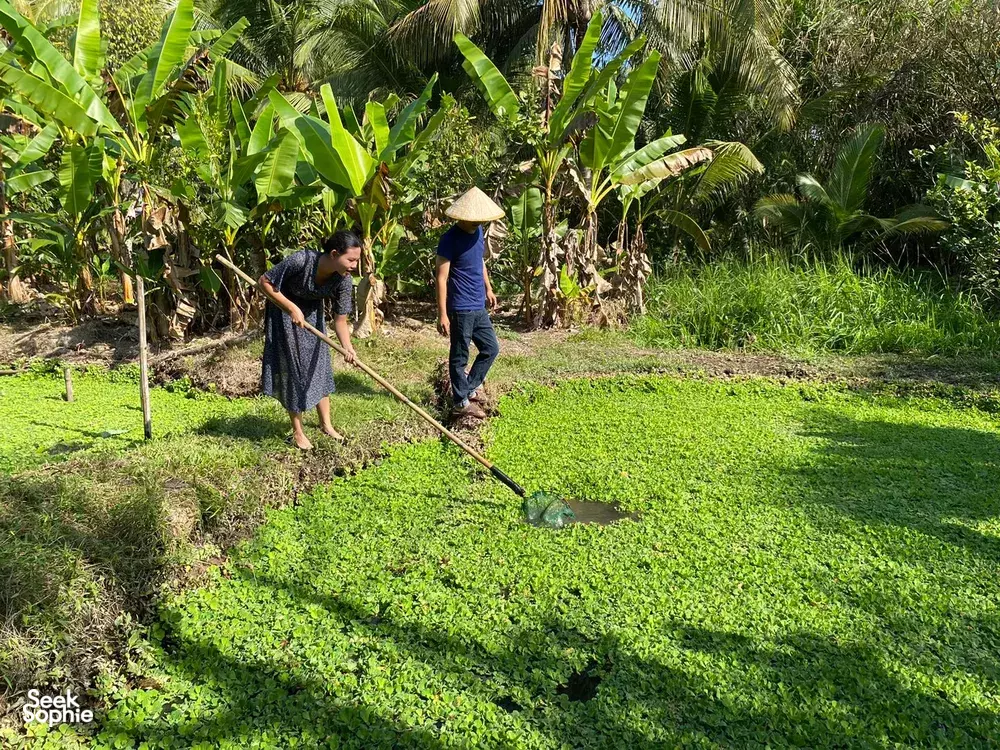 Buckle up for a day of genuine Mekong Delta adventures with your host, Yennie! More than just sightseeing, this experience dives head-first into local life. You'll navigate bustling markets and peaceful villages, try your hand at snail-ditching (yes, really!), and even cook lunch with a local family in their garden.What to ExpectDelve into history at the Mazu Temple, dating back to the 19th century.Get lost in the sights, sounds, and smells of Vinh Long's vibrant wet marketStroll along shaded paths in a rural village and observe traditional fish farms and handicraft workshops.Journey to a hidden town, meet a local family, and learn how to identify (and eat!) tropical plants and fruits.Become a Vietnamese chef for the day and help prepare a delicious lunch with your host family.TipsGet your sunscreen, hats, and sunglasses at the ready because we'll spend most of our time outdoor!