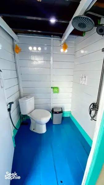 Shared shower and western toilet onboard houseboat