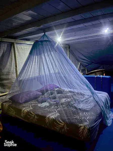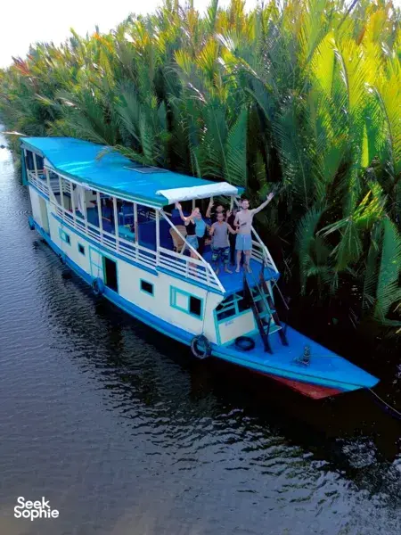 If you are a solo traveller and looking to explore Tanjung Puting's wildlife with a fun group and an affordable price, this trip is for you. This laid-back adventure is led by an experienced, English-speaking local guide who loves sharing stories about wildlife, and local life. Along the way, you’ll visit all three key orangutan feeding stations—Tanjung Harapan, Pondok Tanggui, and Camp Leakey—giving you a deeper and more complete orangutan experience than most trips that only cover two stops.Another highlight that truly sets this trip apart is the night trek—something that only private trips include. After sunset, step into the jungle with your guide to discover its nocturnal side, where you may spot vipers, tarantulas, insects, glowing fungi, and other nighttime wildlife rarely seen by day.Beyond orangutans, keep watch for proboscis monkeys, hornbills, kingfishers, and crocodiles along the riverbanks. Back on board, the friendly local crew prepares fresh, delicious Indonesian meals, cooked daily and shared together on the boat—simple, hearty, and incredibly satisfying after a day of exploration.Perfect for wildlife lovers, solo travellers, and adventurous souls, this shared trip offers an authentic, slow-travel jungle experience where you can get incredibly close to nature, connect with fellow travellers from around the world, and enjoy a truly genuine adventure—without the high cost of a private charter 🌿🦧What to ExpectVisit three orangutan feeding stations, including Tanjung Harapan, Pondok Tanggui, and Camp LeakeySlow river cruising through stunning rainforest scenery and blackwater creeksWildlife spotting – orangutans, proboscis monkeys, hornbills, and many moreRare night trek with a chance to see nocturnal creatures like vipers, tarantulas, glowing fungi, snakes, and even tarsius or leopardSunset cruise and enjoy a magical riverbank firefly display while weather permitDelicious meals onboard daily, including snacks and coffee & teaTraditional Dayak longhouse visit for a touch of local cultureSleep under the stars in a cosy traditional houseboatGood to KnowLittle to no phone signal during the trip — perfect for a digital detoxBring comfortable clothes suitable for jungle walks and outdoor adventures.The terrain at the feeding stations is beginner-friendly but can be muddy — bring good shoesBasic onboard facilities include a western toilet, shower, and mosquito nets – just like a simple but comfortable rainforest retreat.Amenities/facilitiesShared traditional Kelotok boat with clean and well maintained bathroom (toilet & shower)One bathroom (toilet and shower) designated for guest and one for the crewWe provide mattresses, mosquito nets, and blankets for a comfortable night on the deckThe boat can accommodate a maximum of 8 people, will sleep on the open-air deck, a favorite for those who love falling asleep with natural breeze and listen to the sound of jungle.
