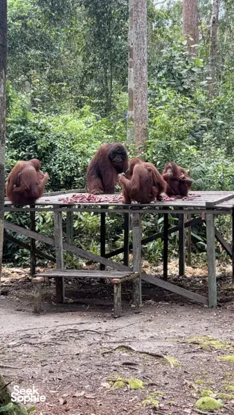 Visits to three orangutan feeding stations: Tanjung Harapan, Pondok Tanggui, and Camp Leakey
