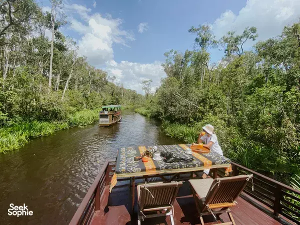 在私人4天河上巡游,探索神奇的丹绒布廷热带雨林。你将乘坐传统木质木屋船(称为klotok)深入森林,观察野生猩猩,参观再植项目,结识当地社区——每一步都体现着对保护热带雨林的真实承诺。如果你想远离游客的拥挤,更有意愿带着目标出行,这个行程非常适合你。这里的导游是一位前老师和生态旅游倡导者,他真正关心保护森林、支持当地人。他和团队不仅带你看风景——他们分享故事、与你一起植树、确保你的访问带来积极影响。非常适合注重环保、喜欢小团体体验、希望在探索中回馈的旅客。最棒的是?你会在船上伴着星空入眠,享受当地厨师准备的餐点,还能在夜晚看到萤火虫点亮红树林。你还可以参与有意义的植树活动,为真正的再植任务出一份力——这是一个直接支持森林未来的难得机会。无论你喜欢野生动物、环保,还是想体验不同寻常的真实旅行——这里都应有尽有,而且没有人群。期待内容乘坐传统木质船只,进行为期4天的丹绒布廷国家公园私人河上巡游参观Leaky营地及其他猩猩康复中心,观察喂食情况,了解保护工作由经验丰富的本地导游带领,穿越热带雨林,观察野生动物参与具有影响力的植树活动,作为再植计划的一部分(在Jerumbun)参观当地村庄,了解国家公园边缘的生活在夜晚乘坐萤火虫巡游,欣赏尼帕棕榈树(天气和月光允许时)所有餐点在船上新鲜准备,由本地工作人员和厨师提供注意事项此次体验直接支持本地就业和森林保护请准备透气的衣物和雨具,应对热带雨林的温暖潮湿环境萤火虫的出现依赖月光和干燥天气设施/便利传统木质河船,具有开放式丛林景观简易床垫、枕头、蚊帐,以及私人或共用睡眠区干净的船上厕所和基础浴室设施
