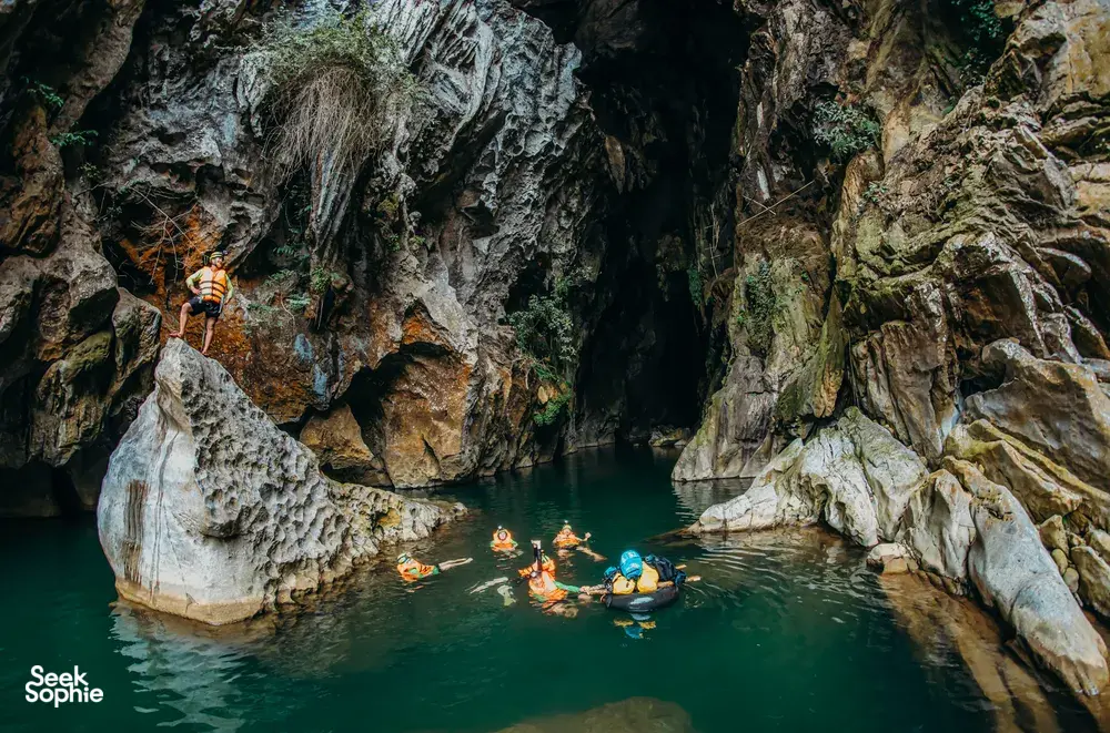 Trek jungle & explore Rục Mòn Cave with swim, jump & BBQ lunch in ethnic villageShow Details
