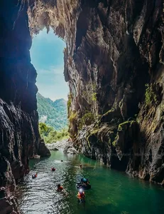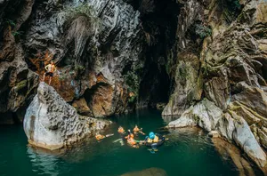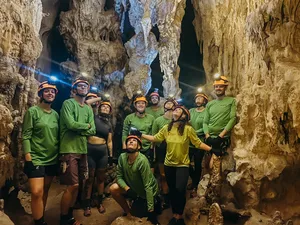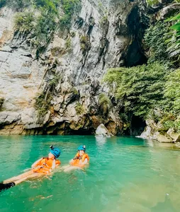 This 2-day, 2-night adventure is ideal if you want to experience both the famous sights and the hidden gems of Phong Nha—without giving up your creature comforts. You’ll spend your days exploring the wild, then return to the comfort of a cosy homestay each night—no need to rough it with wild camping like other tours. This is perfect for travellers who want a real mix—easy sightseeing one day, wild adventure the next. You’ll get local connections too, with a village BBQ lunch and the chance to take part in seasonal farming activities. It’s suitable for adventurous families with kids (children aged 12 and up), couples, or solo travellers looking for a deeper experience of Vietnam’s cave country. And after your action-packed days, unwind with two nights in a comfortable homestay.What to ExpectWander through the stunning Paradise Cave, Asia’s longest dry cave, with towering stalactite formationsBoat gently into the magical Phong Nha Cave along the emerald Son RiverWalk through Botanical Gardens filled with rare flora and faunaJungle trekking through remote forest and over rocky terrain to access the caveExclusive entry to Ruc Mon Cave—with swimming, optional cliff-jumping, and epic rock formations10-minute silent cave meditation surrounded by nature’s echoesBBQ lunch made by local porters in a Trung Hoa ethnic minority villageSee landscapes made famous by the film Kong: Skull IslandChance to kayak, SUP or swim depending on the seasonEnglish-speaking guides with great local knowledgeProfessional porter and safety support teamGood to KnowOnly tour with access to Ruc Mon Cave—off-limits to the publicModerate fitness level required: involves trekking, climbing down a metal ladder and swimming in the caveAll cave and trekking safety gear: helmets, life jackets, gloves, dry bags, towels providedSuitable for children aged 12 and upVegetarian meal options available – just let your guide know in advanceBBQ lunches and daily breakfasts included (dinner is on your own)Amenities/facilities2-night stay in a clean, comfortable homestay in Phong Nha