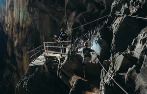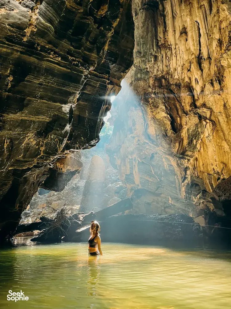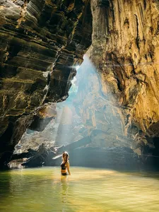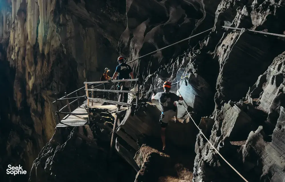 This 2D2N trip gives you the best of both worlds – a caving adventure and cultural experience of meeting the formerly cave dwelling Ruc tribe. This trip also balances the outdoor sleeping with only one night camping deep inside Ruc Mon cave, and one night relaxing in a comfy local homestay. An unexpected bonus is passing by a filming location from Kong: Skull Island!You will be exploring the lesser known Ruc Mon Cave which has both dry and wet chambers, so you’ll get to experience underground river swims alongside dramatic cathedral-like rock formations. The route in and out takes you past farms, peaceful minority villages, and a filming location from Kong: Skull Island – it really feels like a journey through another world.But it’s not all about the adrenaline – you’ll also get time to soak up the local culture. You’ll visit Hoa Son village, home to the Ruc people – one of Vietnam’s most mysterious tribes. These former cave-dwellers only moved into villages in 2007, and they still practise traditions passed down for generations. So if you’re craving a deep, meaningful travel experience that combines nature, culture, and just the right amount of physical challenge – this is it.What to ExpectMeet the Ruc community and discover centuries-old traditions of Vietnam's most secluded tribeSwim 2km through an underground river and explore dramatic rock formationsHike through 6km of pristine jungle filled with ancient trees and rare creatures; also see filming location of Kong: Skull Island!Climb through a multi-level dry cave dotted with colourful stalactites and fossilsOptional leaps into natural pools from up to 6 metres high – or take the gentler route via ladderOne night of sleep in a giant cave, and one night in a warm, welcoming homestayBBQ meals made fresh for you by a friendly local porter teamGood to KnowDifficulty level: 8/10; no previous caving or trekking experience needed, but you’ll want a decent fitness levelAll safety gear is provided – helmet, life jacket, gloves, headlamp, dry bag, socks, and trekking sandalsBring clothes you don’t mind getting wet and muddy – long sleeves are best for jungle trekkingRoute involves ladders, minor rock climbs, swimming, and about 16km of hiking over two days
