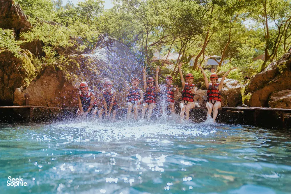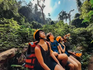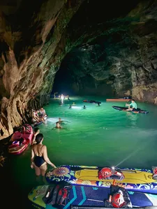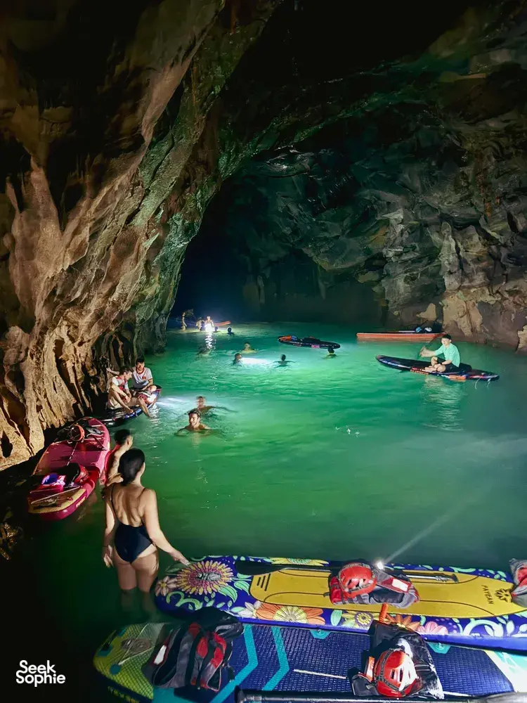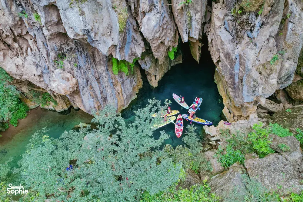 Looking for a less crowded Phong Nha day trip for the whole family? Unlike more touristed spots like Paradise and Phong Nha Cave, this trip takes you to the untouched Abandoned Valley, where the jungle still feels wild and peaceful. The highlight? Paddling by SUP over 1km deep into E Cave – a breathtaking turquoise water cave tucked inside the jungle. And when you emerge, it’s all playtime: think snorkelling, water volleyball, and water gun games. It’s the perfect mix of active adventure and childlike fun.This is the only day trip in Phong Nha that lets kids aged 5 and up explore hidden caves, trek through pristine rainforest, and paddle through glowing turquoise underground rivers.Perfect for families with children, or active explorers who want to get off the beaten path without going too extreme. With a small group, knowledgeable and fun local guides, and a hearty jungle lunch, this is one of the most unforgettable day trips in Phong Nha – without the overnight commitment.What to ExpectTrek through Abandoned Valley, a remote and lush jungle far from tourist crowdsPaddleboard into E Cave, a water-filled cave with stunning turquoise water and ancient coral fossils on the ceilingEnjoy water fun at the cave entrance: SUP, snorkelling, water volleyball, water gun games, and moreJoin a small group led by fun and experienced local guidesBreak for a picnic jungle lunch and light snacks during the dayGood to KnowSuitable for ages 5 to 60Rated 4/10 in difficulty – you'll need decent fitness and confidence in waterTotal distance: 7.5km (includes jungle trekking, SUP, swimming and cave exploration); SUP and swimming distance: 2–3kmTerrain includes rocky trails, forest paths and mild karst terrain climbs – expect to get muddyOptional Add-On: Golden Cave AdventureConsider adding the Golden Cave exploration to your tour—no extra hours needed. Venture into a fossil cave with massive glittering stalactites, delicate cave pearls, and a breathtaking “golden room” of rare 24K gold-coloured formations. A perfect choice if you’re up for a little extra adventure, combining both dry and wet cave sections for a more complete journey without extending your tour time.