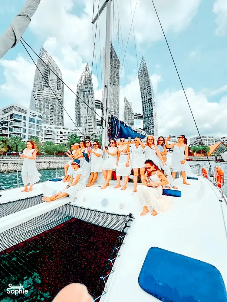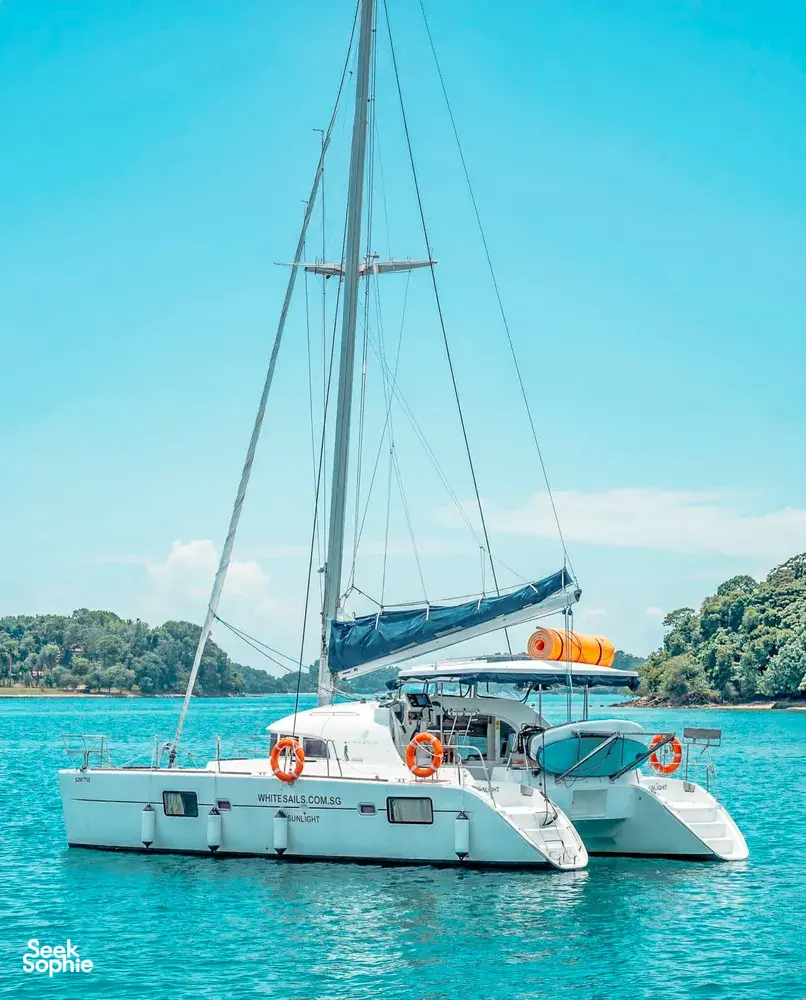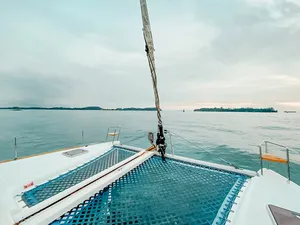Want an extended yacht party experience without the price tag of a full-day charter? This 5-hour luxury catamaran trip to Lazarus Island is one of the best-value yacht trips in Singapore - with more actual cruising time than most other options out there.Unlike many charters that only give you a quick spin out, this one gives you nearly 2 hours of cruising time - plus plenty of freedom once you drop anchor off serene Lazarus Island. Whether you’re in the mood for karaoke, paddle-boarding, or just a dip in the sea, this has something for everyone. You’ll have the whole yacht to yourselves, so you can tailor the vibe to your liking.This is perfect for groups of up to 18 who want a private space to celebrate, reconnect or just enjoy the beautiful waters.What to Expect5-hour private charter on a luxury catamaran to Lazarus Island1 hour and 45 minutes of actual cruising time - more than most chartersFree use of kayaks, paddleboards, snorkelling gear, fishing rods, and a floating matEnjoy sunbathing on the trampoline net or diving into karaoke and dance-offs on deckPicnic or BBQ on board - bring your own food and drinksAir-conditioned comfort with 2 guest bedrooms and 2 bathroomsWatch for marine wildlife or snap scenic photos along the wayGood to KnowFood and drinks are not included, so bring your own or arrange cateringBring sunscreen, sunglasses and a hat - you'll be under the sun quite a bitFishing rods provided, but do bring your own bait if you plan to fishMax group size is 18 guestsFor everyone’s safety, water activities are only available until 7pm.Amenities/facilities2 guest bedrooms and 2 bathroomsAir-conditioned lounge and cabin areasTrampoline net and floating mat for loungingKayaks, paddleboards, snorkel kits, fishing rods (bring your own bait)Fridge, microwave, galley and large cooler boxBluetooth speakers and karaoke system with 10,000+ songsBathing platform with heated shower