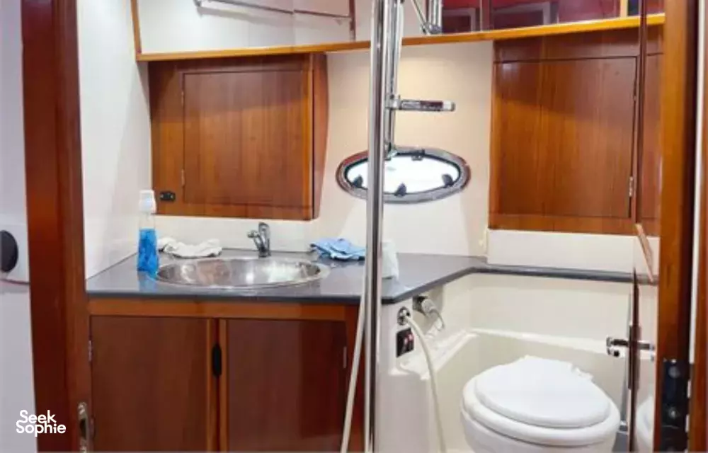 Use of flybridge, large AC saloon, cabin with lush wooden interior and bathroom onboard
