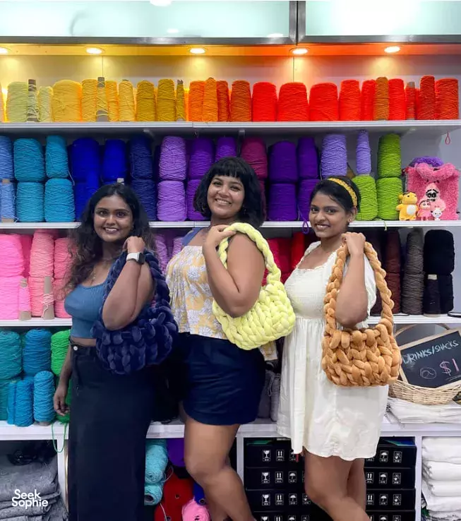 Join us for an unforgettable 1-hour workshop where you can create personalized velvet tote bag! With a variety of colors and styles to choose from, you'll work to craft a unique accessory that showcases your personality. Under the guidance of expert knitters, you'll learn the basics of knitting and leave with a handmade tote bag that's as unique as you!What to Expect:Design and knit your own velvet tote bag using luxurious chunky yarnChoose from a range of colors and styles to create a unique accessoryLearn basic knitting techniques from experienced instructorsLeave with a one-of-a-kind tote bag that you can cherish for years to comeNoteNo prior knitting experience required!