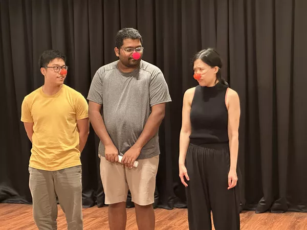 When was the last time your team genuinely relaxed around one another? Not over drinks, not in a meeting, but in a way that felt human? Clowning is basically permission to fail safely. It gives everyone a chance to laugh at themselves, let go of perfection, and connect without the pressure of being “on” at work. It’s one of the quickest ways to break walls, spark creativity, and build real trust — and honestly, it’s just really fun.This is Singapore’s only clowning workshop for teams and groups. And unlike typical corporate team-building, there are no worksheets, no awkward icebreakers, and no forced “takeaways”. In three playful hours, you’ll try clown games, improv, and silly exercises that get everyone laughing, loosening up, and bonding in a way that feels natural, not cringey.Even if your team thinks they’re “not funny”, that’s perfect. Clowning celebrates the wonderfully imperfect. We’ve had introverts, engineers, and “serious people” surprise themselves and totally steal the show.What to ExpectTry out fun clowning exercises and laughter-filled improv games — no acting background neededLearn how to laugh at mistakes and turn ‘failures’ into connection and creativityDiscover your inner clown in a space that's inclusive, non-judgmental, and surprisingly heartwarmingStrengthen team dynamics through shared silliness, games, and communication-building activitiesLearn clowning techniques from an award-winning, professional, Singaporean clownGood to KnowThis is a private workshop, so you can come as a team or group of friendsClown noses are provided for all participants (yes, really!)Venue is not included, but we can help arrange a studio space if needed (additional fee)Perfect for all comfort levels — no performance or theatre experience requiredIf you'd like to focus more on team building (trust, communication, creativity), let us know in advance so we can tailor the experience
